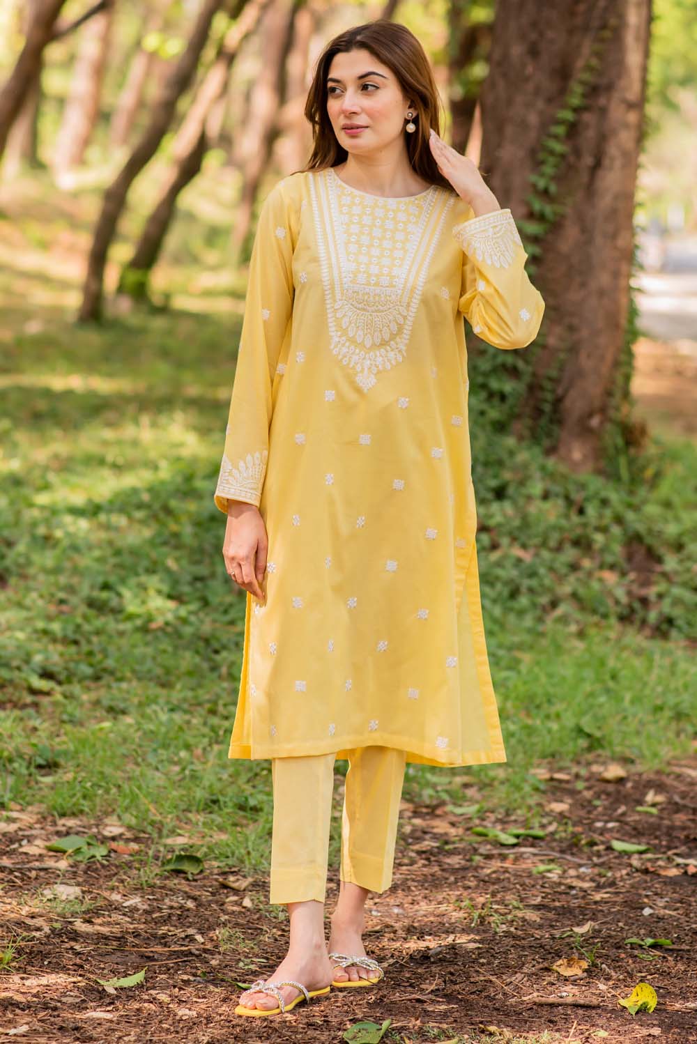 Premium Quality 2-piece suit with intricate embroidered details, paired with plain straight trousers.