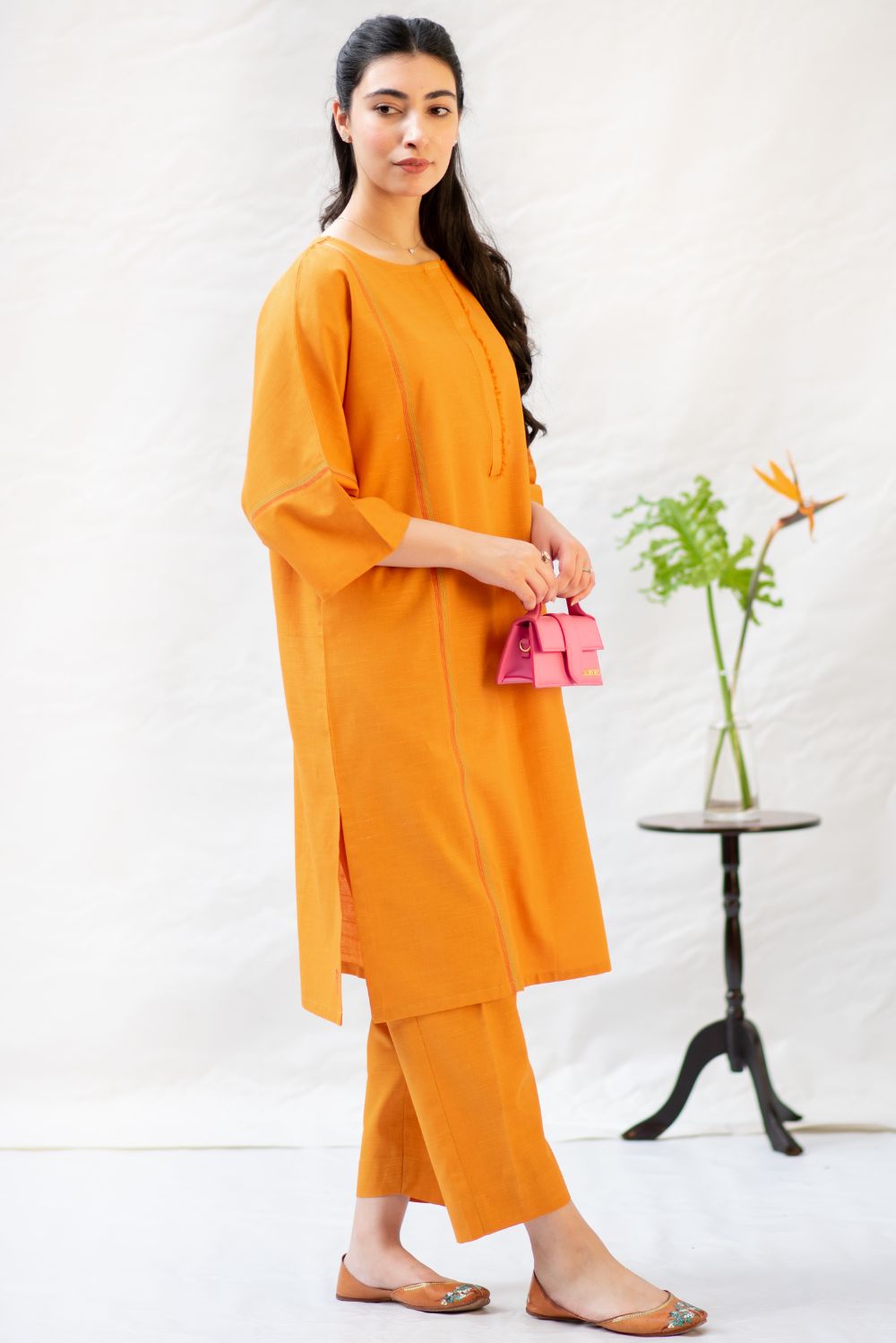 Elevate your style with a Sunshade 2-piece ready-to-wear ensemble. This loose-fit, matching separates set has intricate embroidery details, perfectly paired with matching straight trousers.