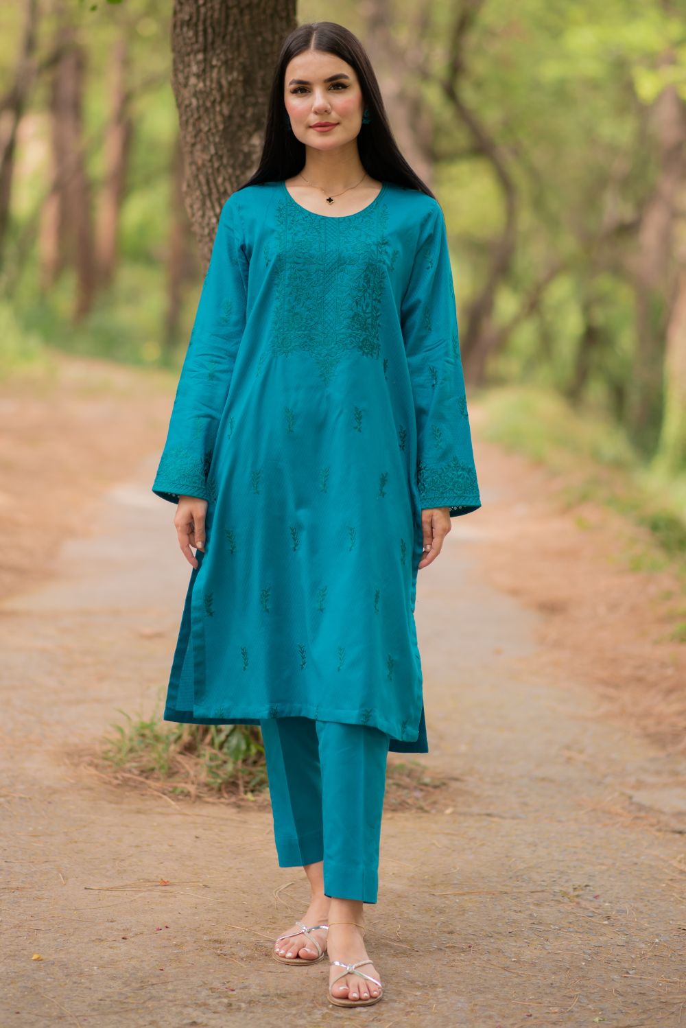 Premium Quality 2-piece suit with intricate embroidered details, paired with plain straight trousers.