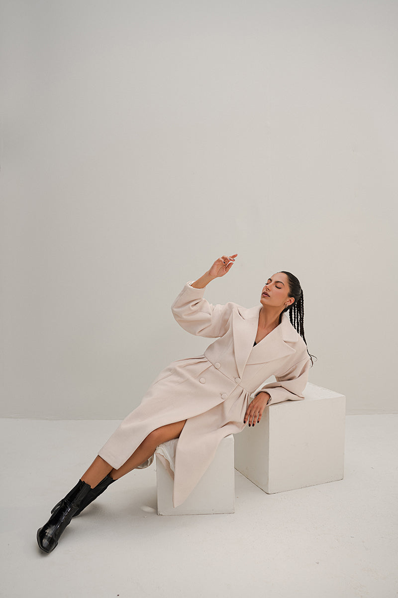 Stay warm in style with the Euphoria Bone Long Winter Coat. Crafted with wool fabric, this bold coat is designed to keep you comfortable and stylish even in the coldest temperatures. Combining a classic silhouette and a modern aesthetic, it is the perfect addition to any winter wardrobe.