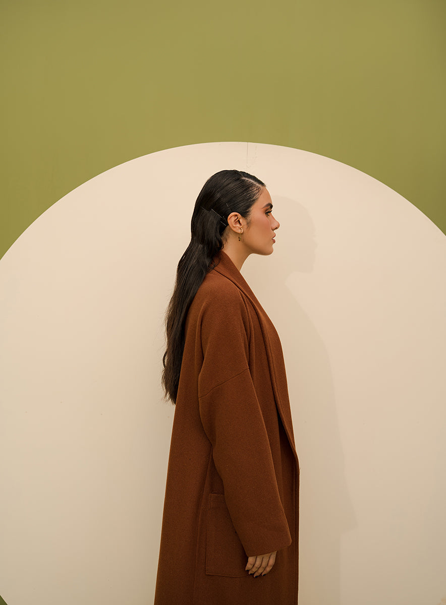 Discover the OBI'S Dream coat in sepia brown - an awe-inspiring blend of timeless elegance and modern sophistication. Crafted from the finest draped wool for a lightweight feel, this beautiful free size coat offers a perfect fit that's sure to flatter. Get ready to exceed your fashion dreams in this stunning piece