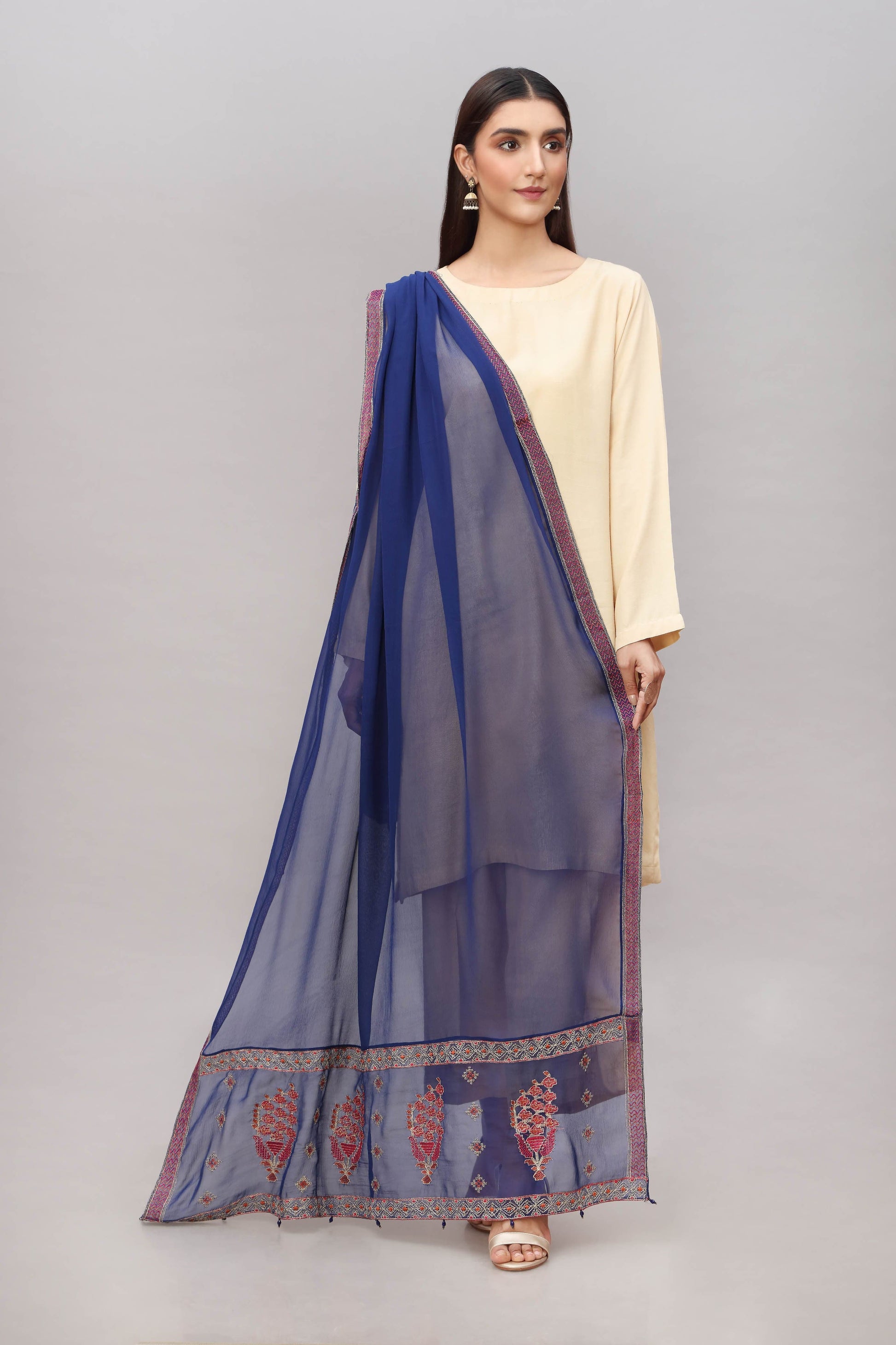 Deep Contrast Colour Patti Dupatta Separate Detailed With Cross Stitch Motif.