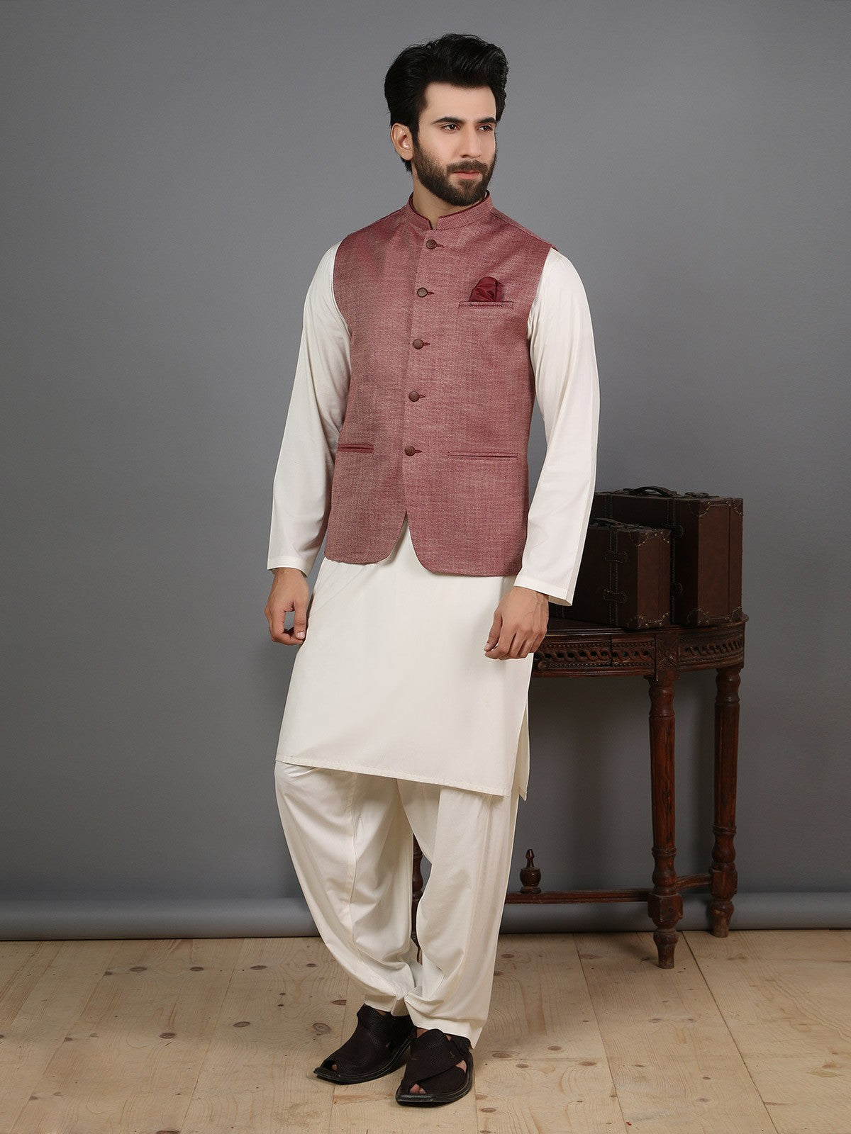 Edenrobe - Men's Burgundy Waist Coat - EMTWC19-005