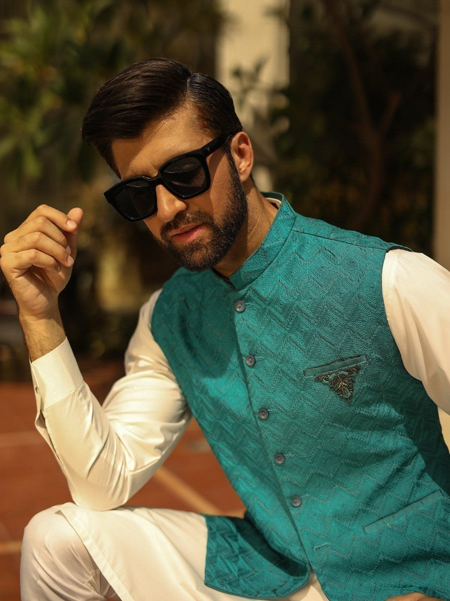 Edenrobe - Men's Turquoise Waist Coat Ceremonial - EMTWCC18-052