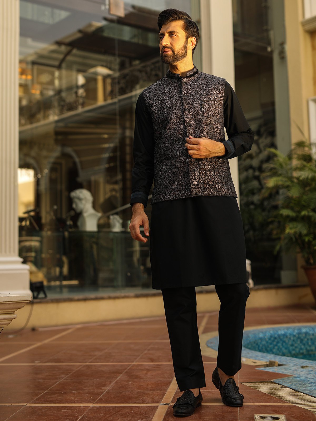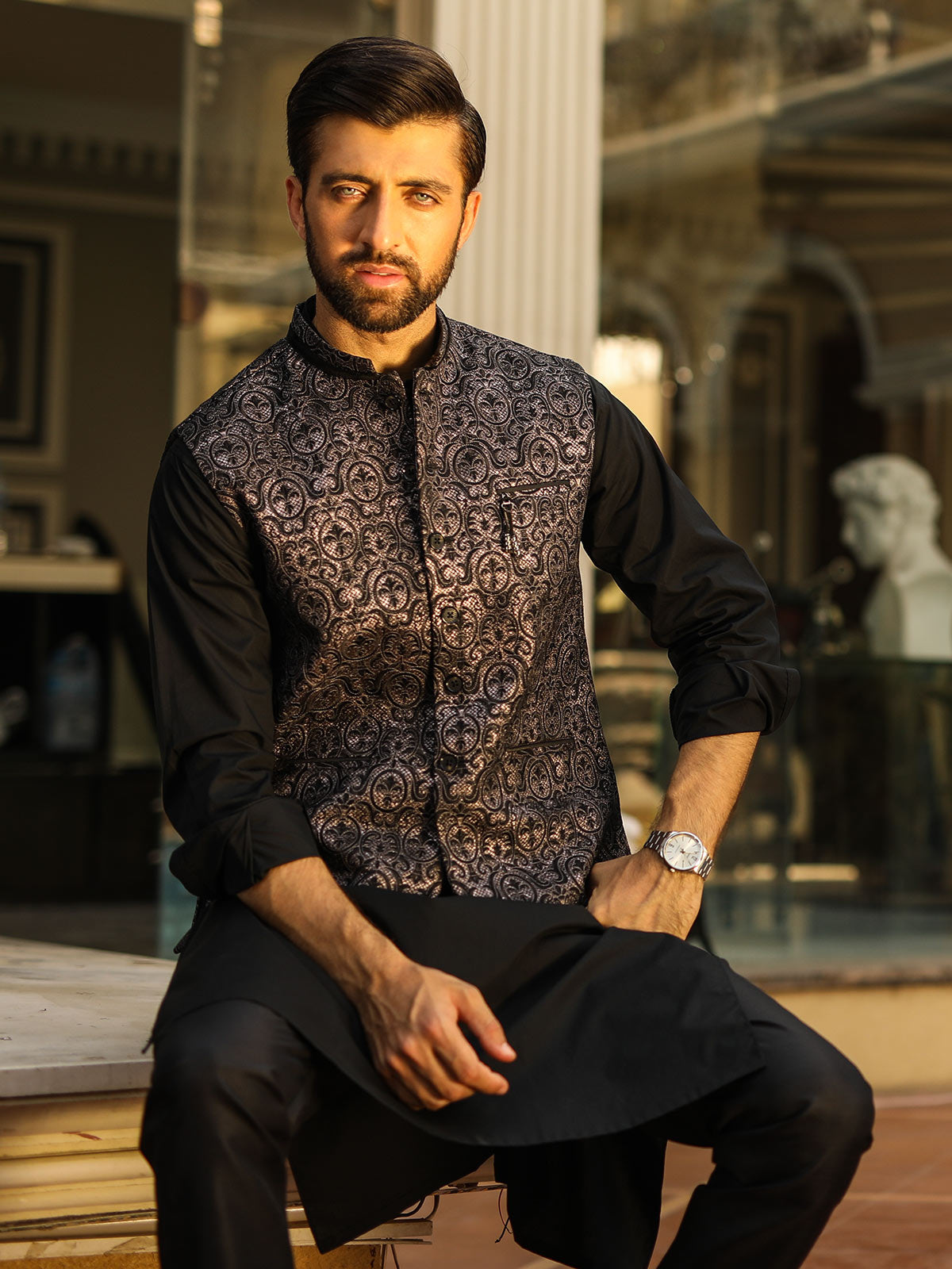 Edenrobe - Men's Black Waist Coat Ceremonial - EMTWCC18-054