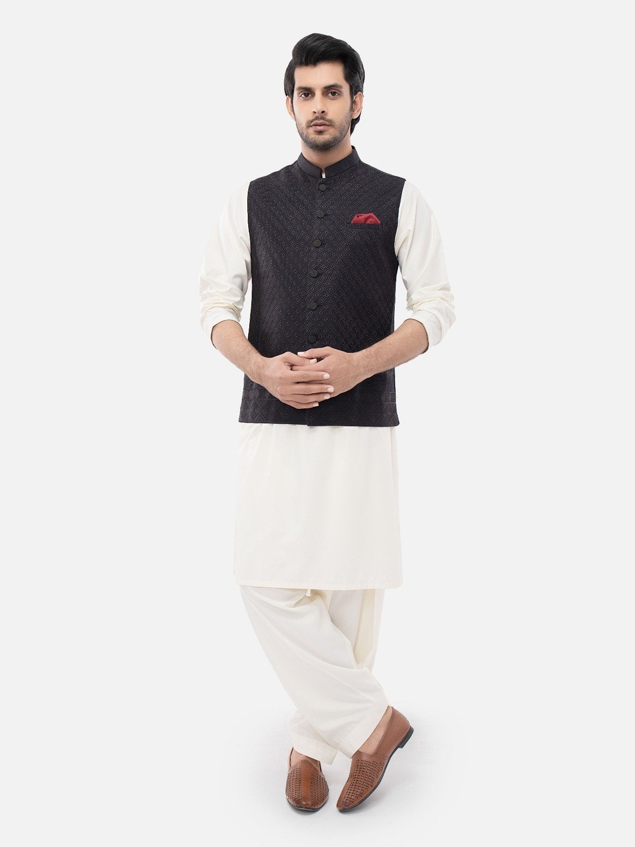 Edenrobe - Men's Black Waist Coat Ceremonial - EMTWCC21-081