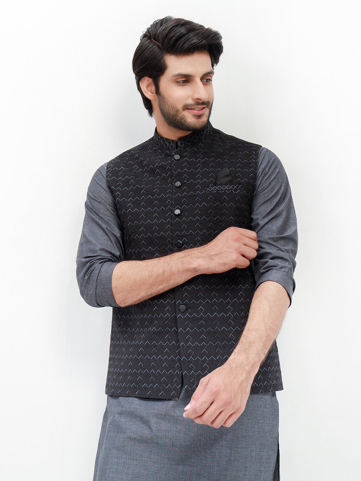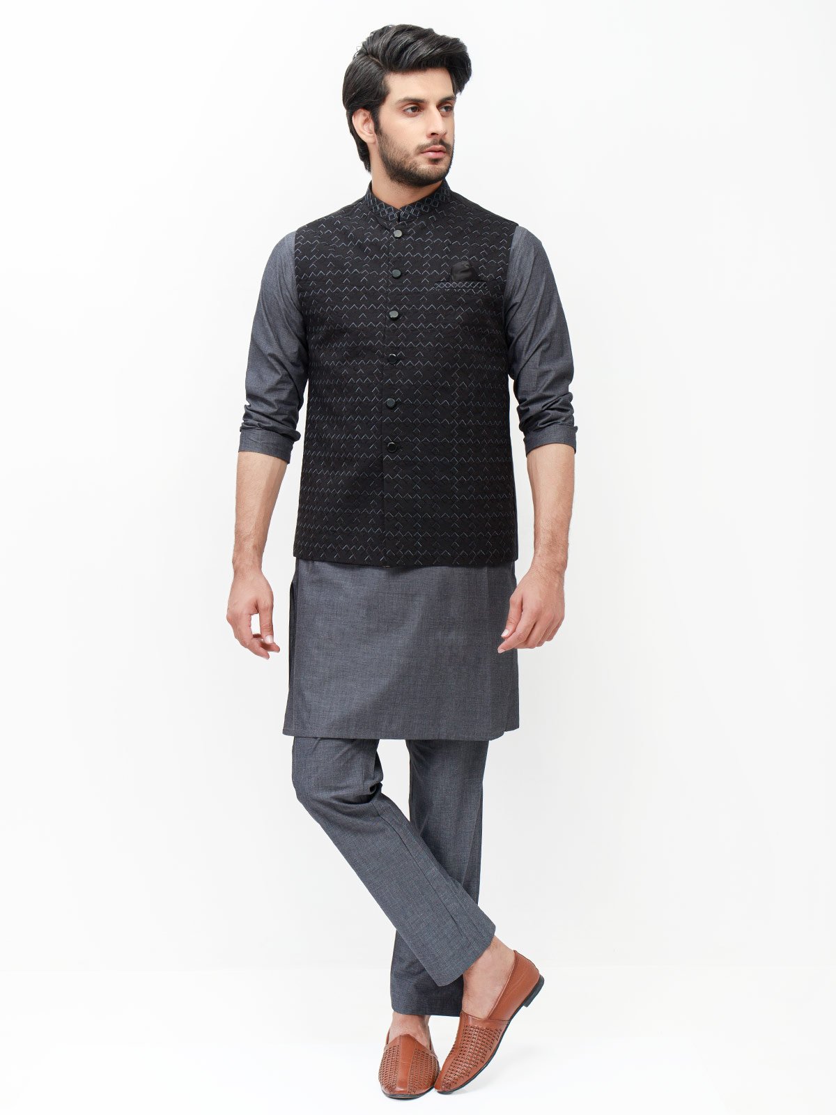 Edenrobe - Men's Black & Grey Waist Coat Suit - EMTWCS21-009