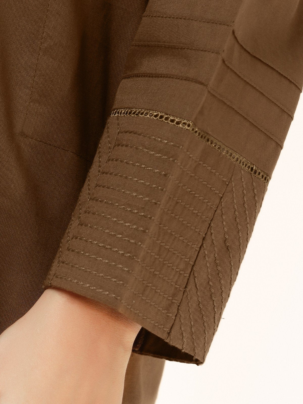 Edenrobe - Mehndi Plain Shirt Trouser Co-Ord Set - EWTK22-68134 (2-Pcs)
