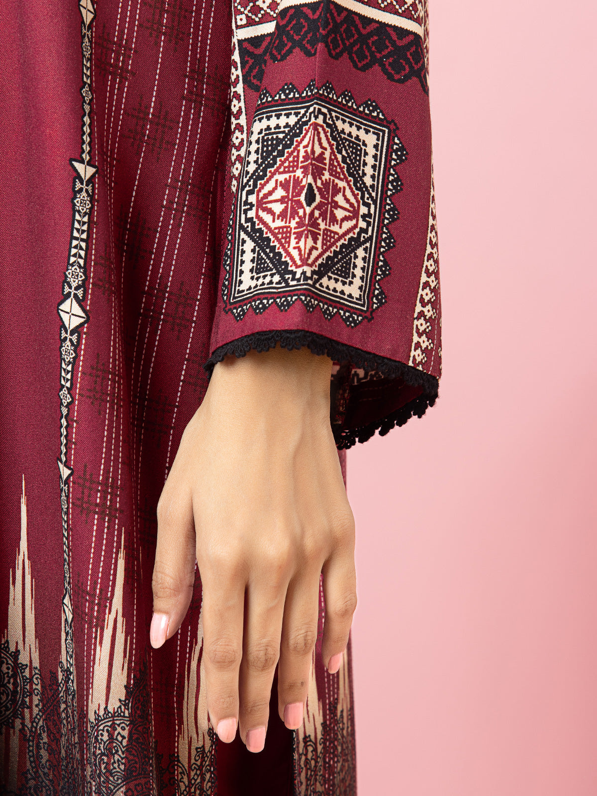 Edenrobe - EWU22A4-24013XXL Unstitched Rust Printed Viscose 3 Piece