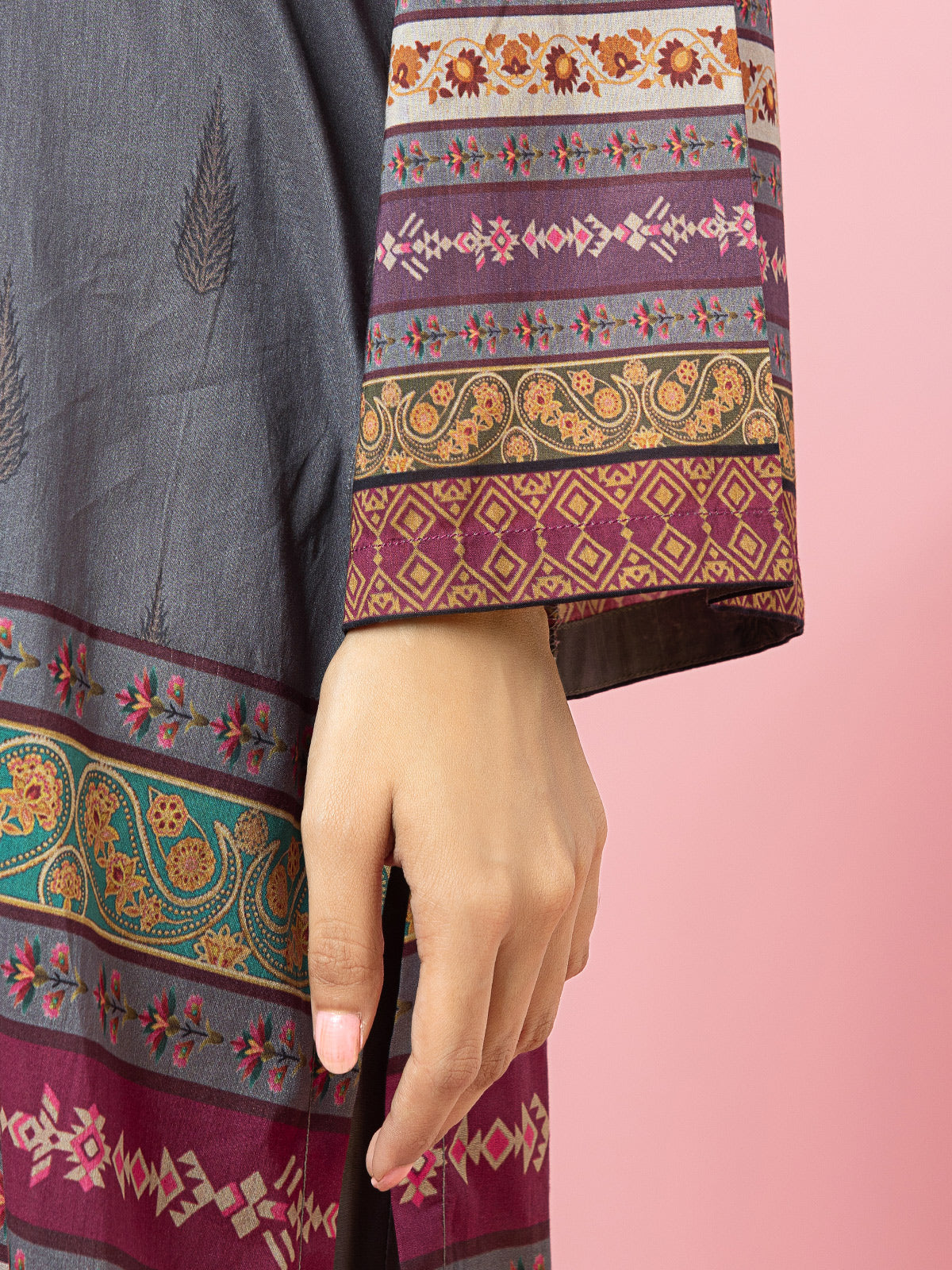 Edenrobe - EWU22A4-24015XXL Unstitched Steel Grey Printed Viscose 3 Piece