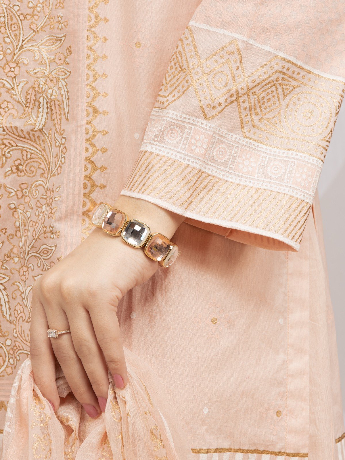 0.65M Gold Paste Printed Lawn Sleeves