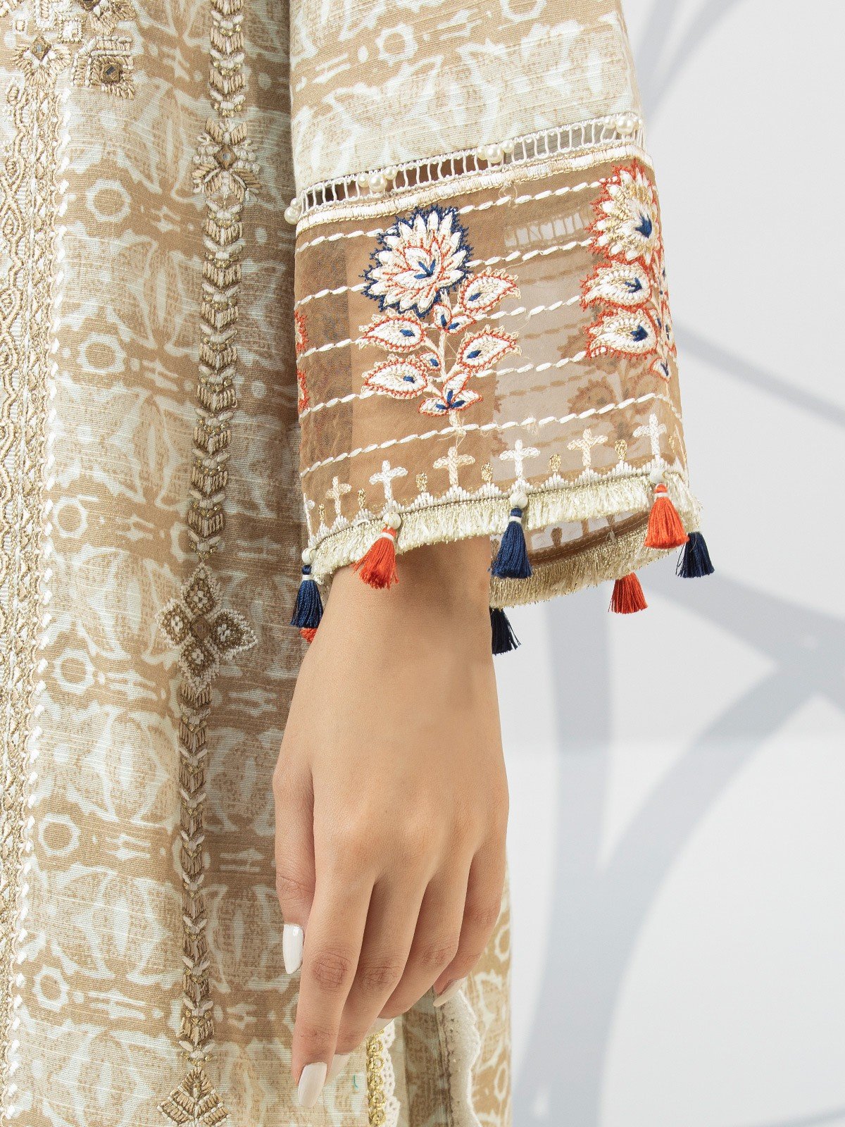 Edenrobe - EWU22V1-23621 Unstitched Beige Embroidered Lawn 3 Piece