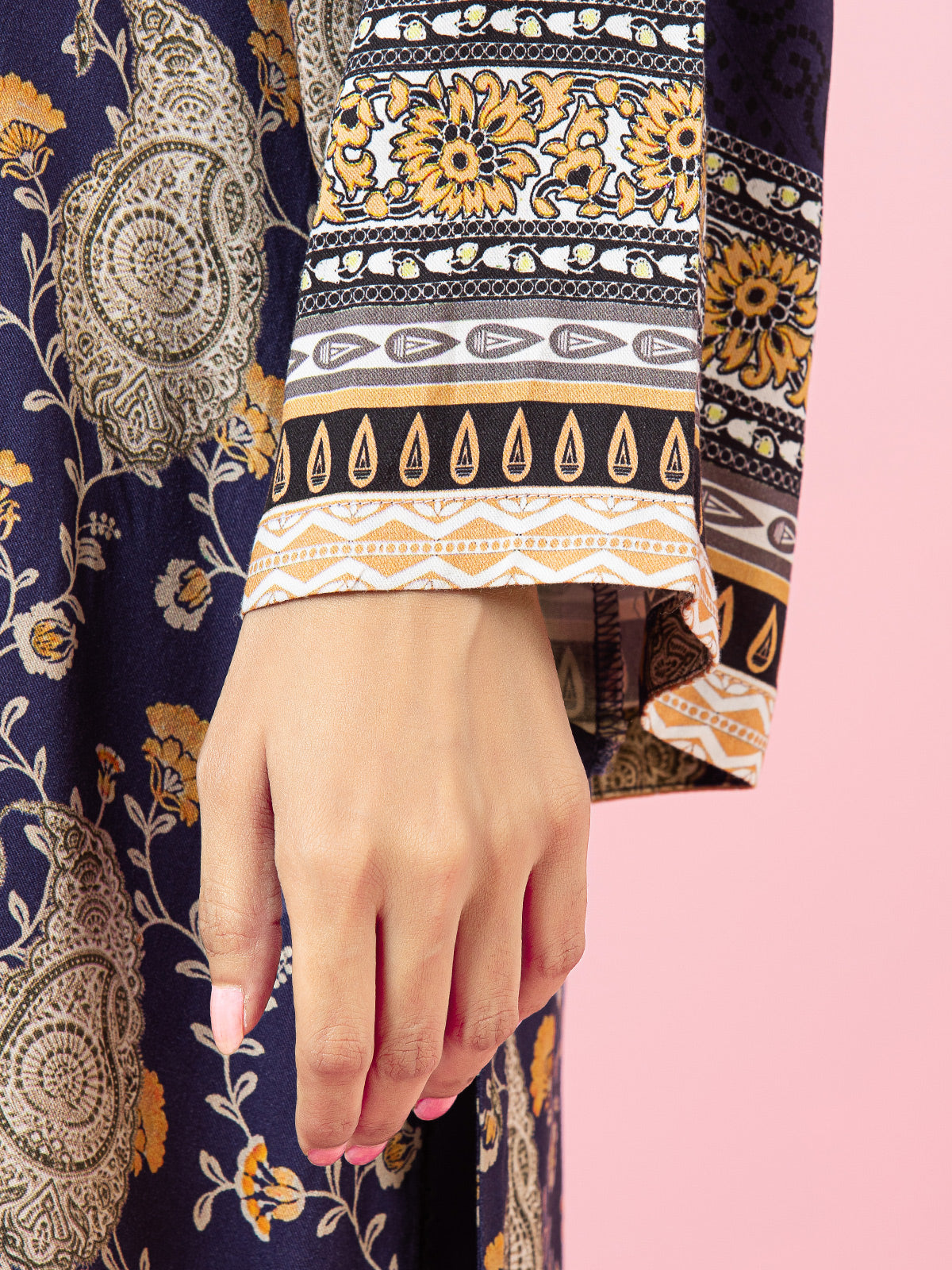 Edenrobe - EWU22V13-24002XXL Unstitched Navy Blue Printed Viscose 3 Piece