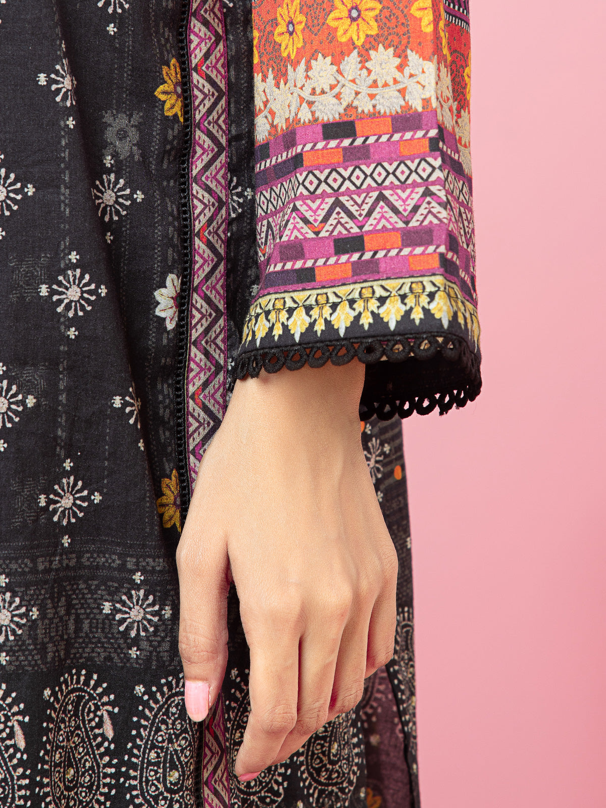Edenrobe - EWU22V13-24003XXL Unstitched Charcoal Printed Viscose 3 Piece