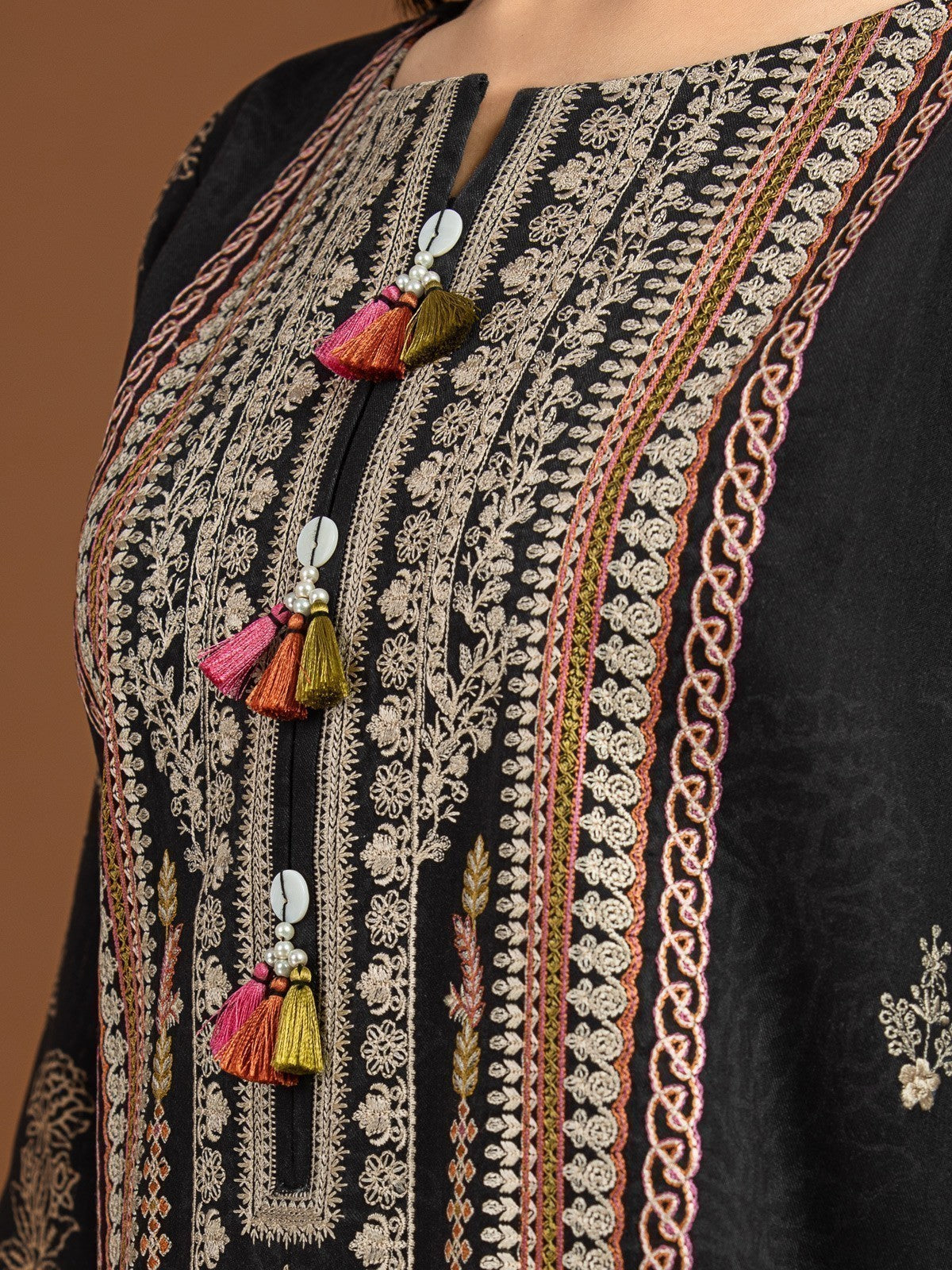 Edenrobe - EWU22V13-24035 Unstitched Charcoal Embroidered Viscose 3 Piece