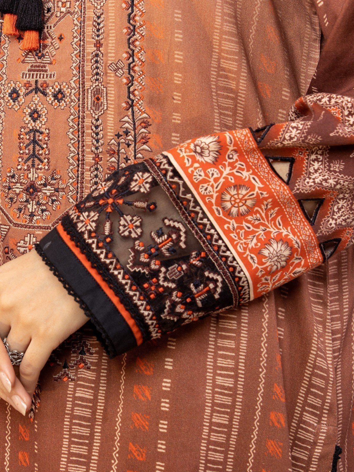 Edenrobe - EWU22V13-24046XXL Unstitched Light Brown Embroidered Viscose 3 Piece