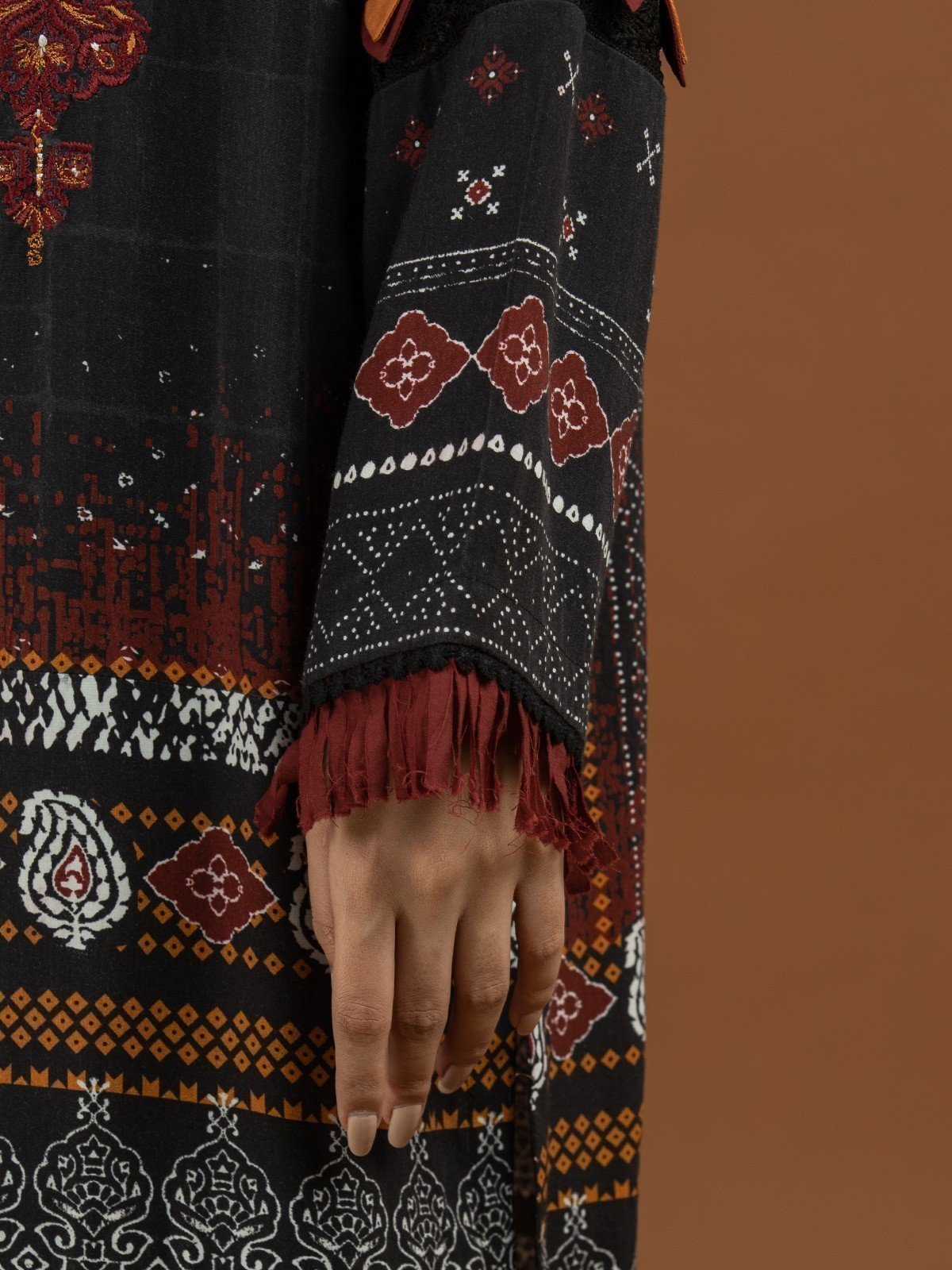 Edenrobe - EWU22V13-24048XXL Unstitched Black Embroidered Viscose 3 Piece