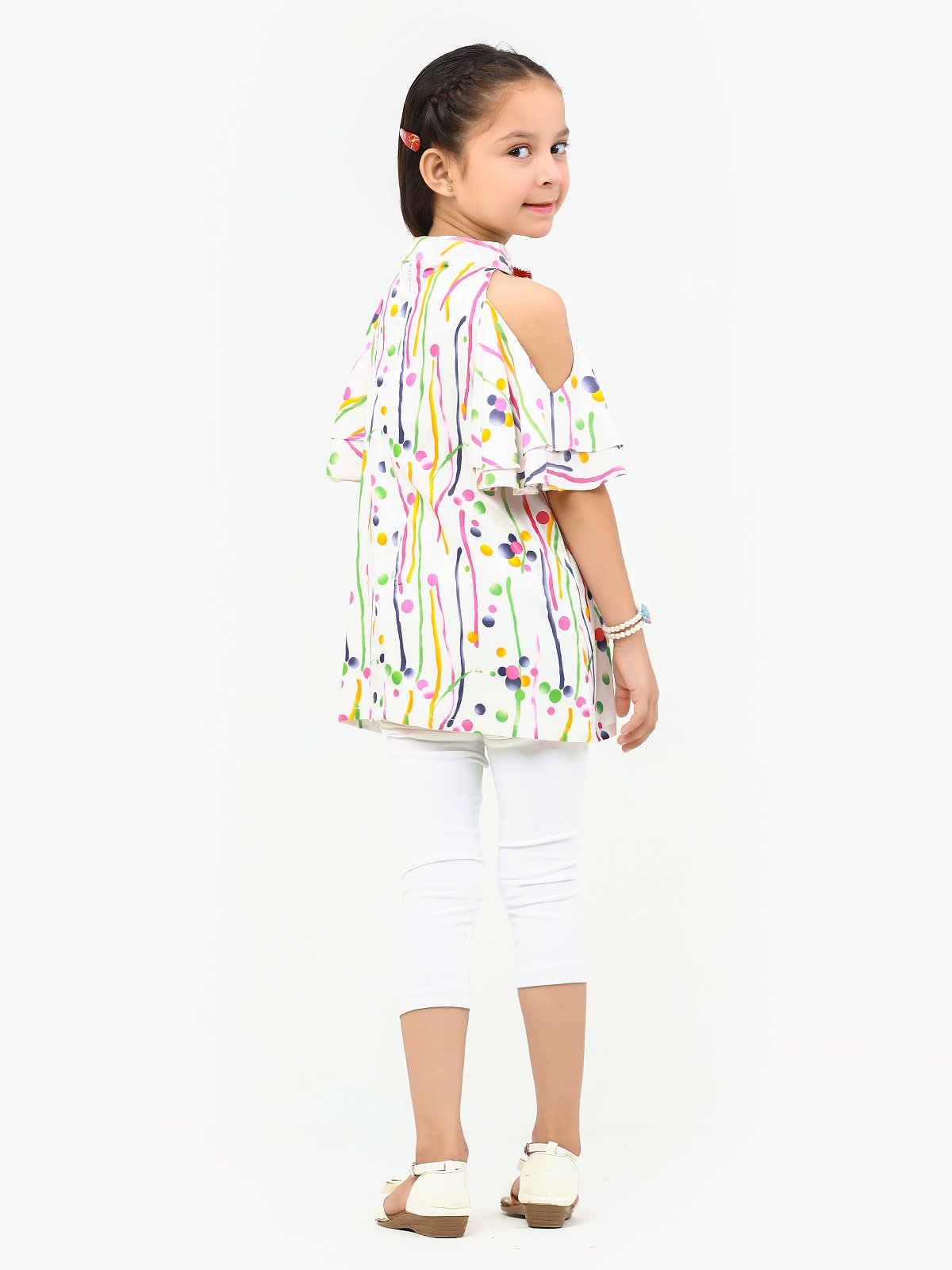 Edenrobe - Girl's White Multi Top - EGTW22-001