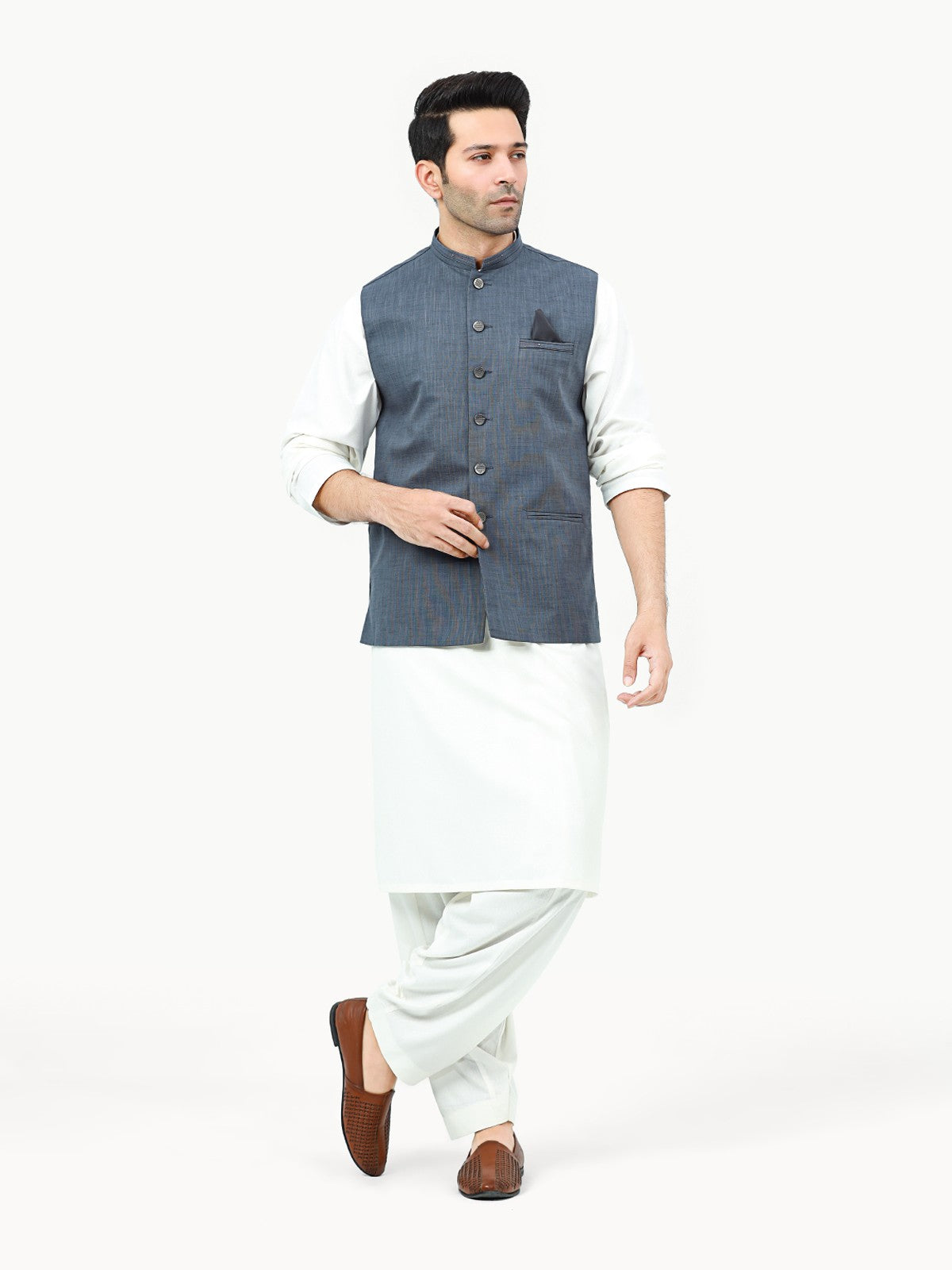 Edenrobe - Men's Steel Blue Waist Coat - EMTWC22-35797