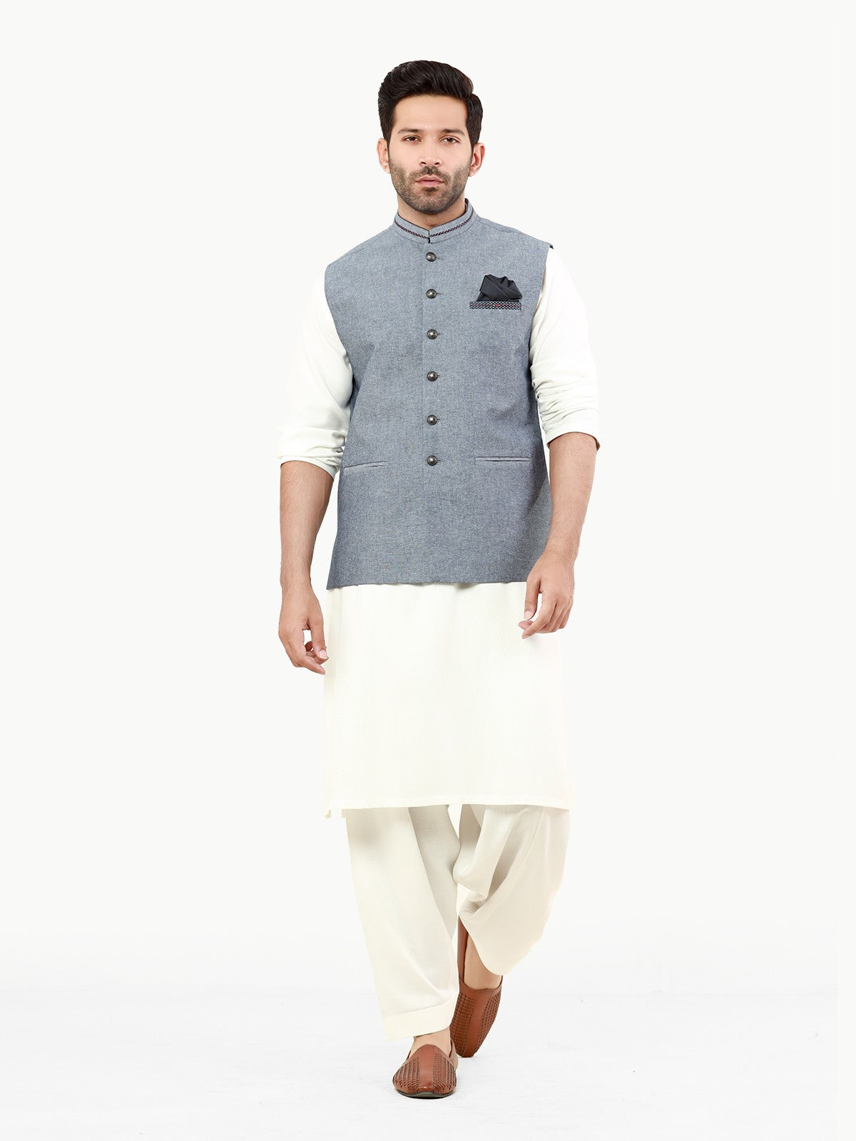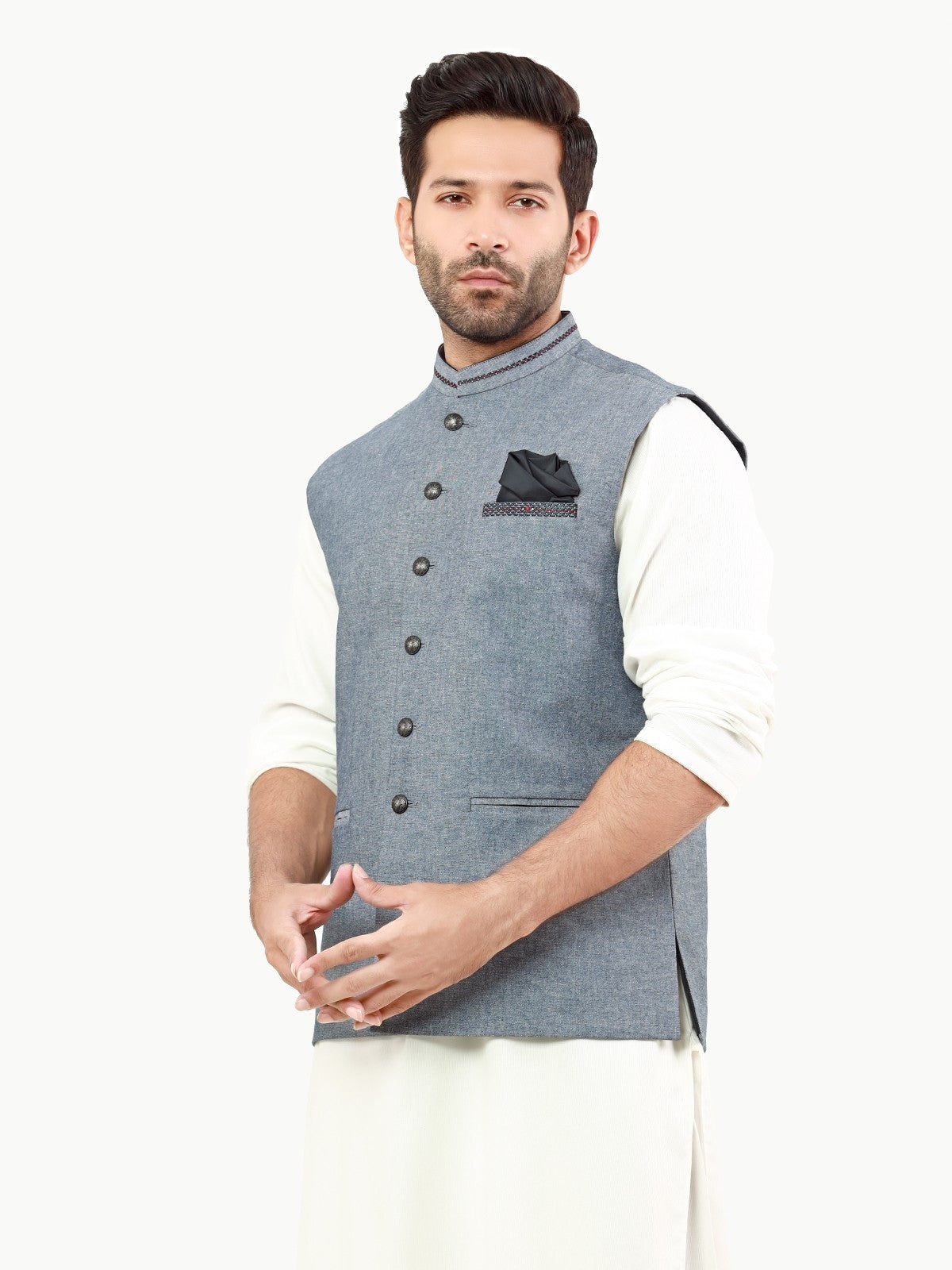 Edenrobe - Men's Steel Blue Waist Coat - EMTWC22-35813