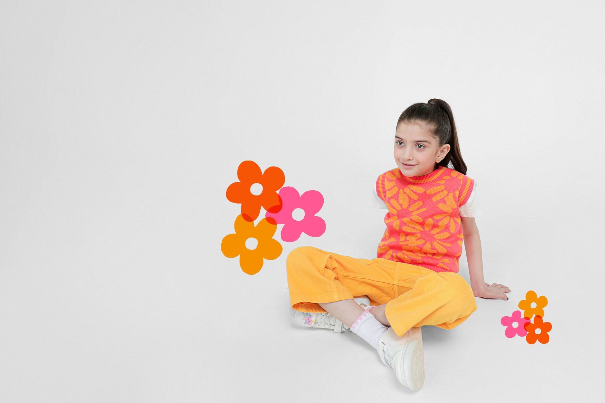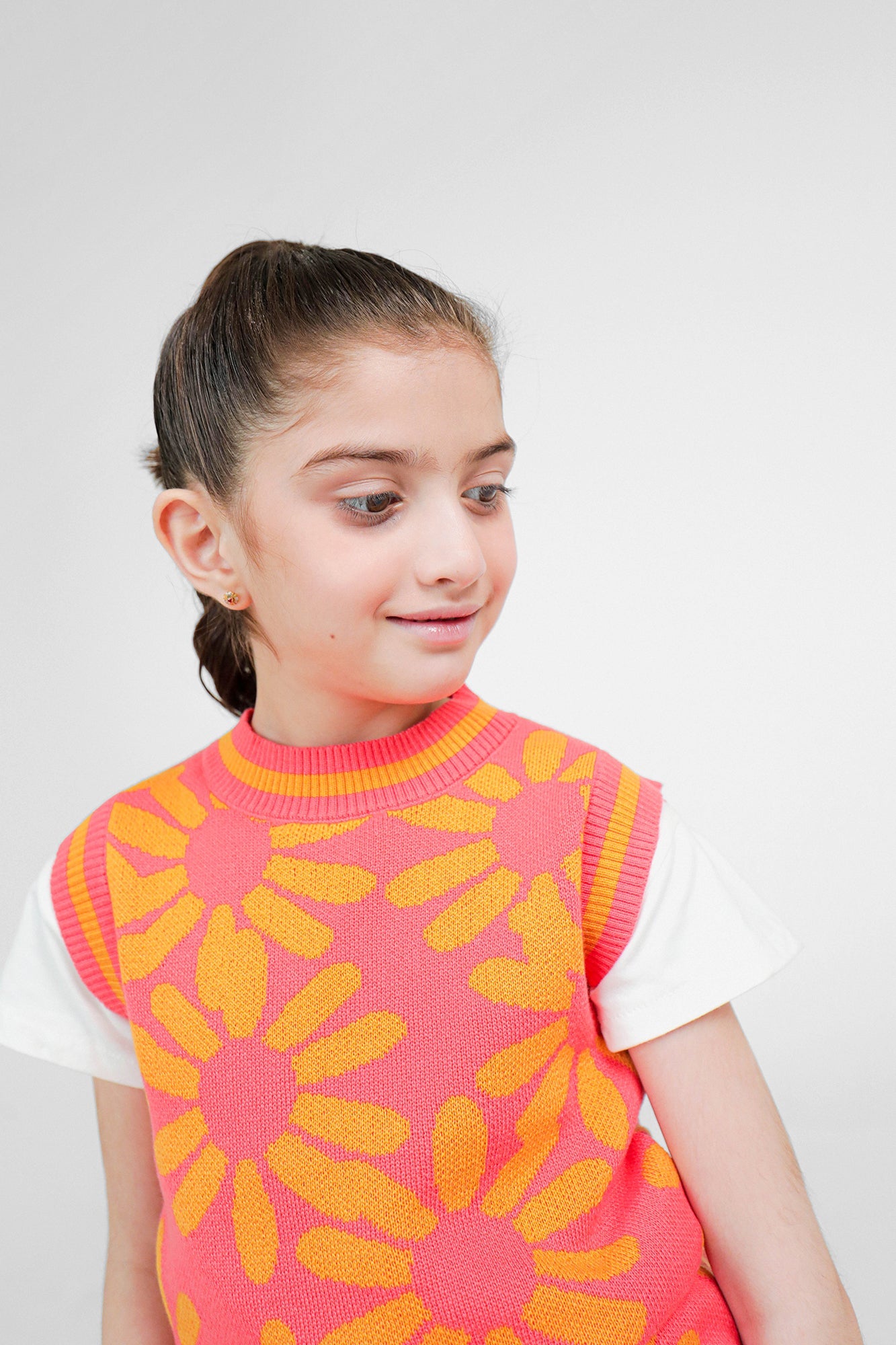 A chic yet attractive design is portrayed on this classy sweater rendered in an aesthetic salmon color. Crafted in a trendy sleeveless silhouette, this resplendent sweatshirt is adorned with floral designs in contrasted orange shade. Style this alluring outfit at happening events this season.