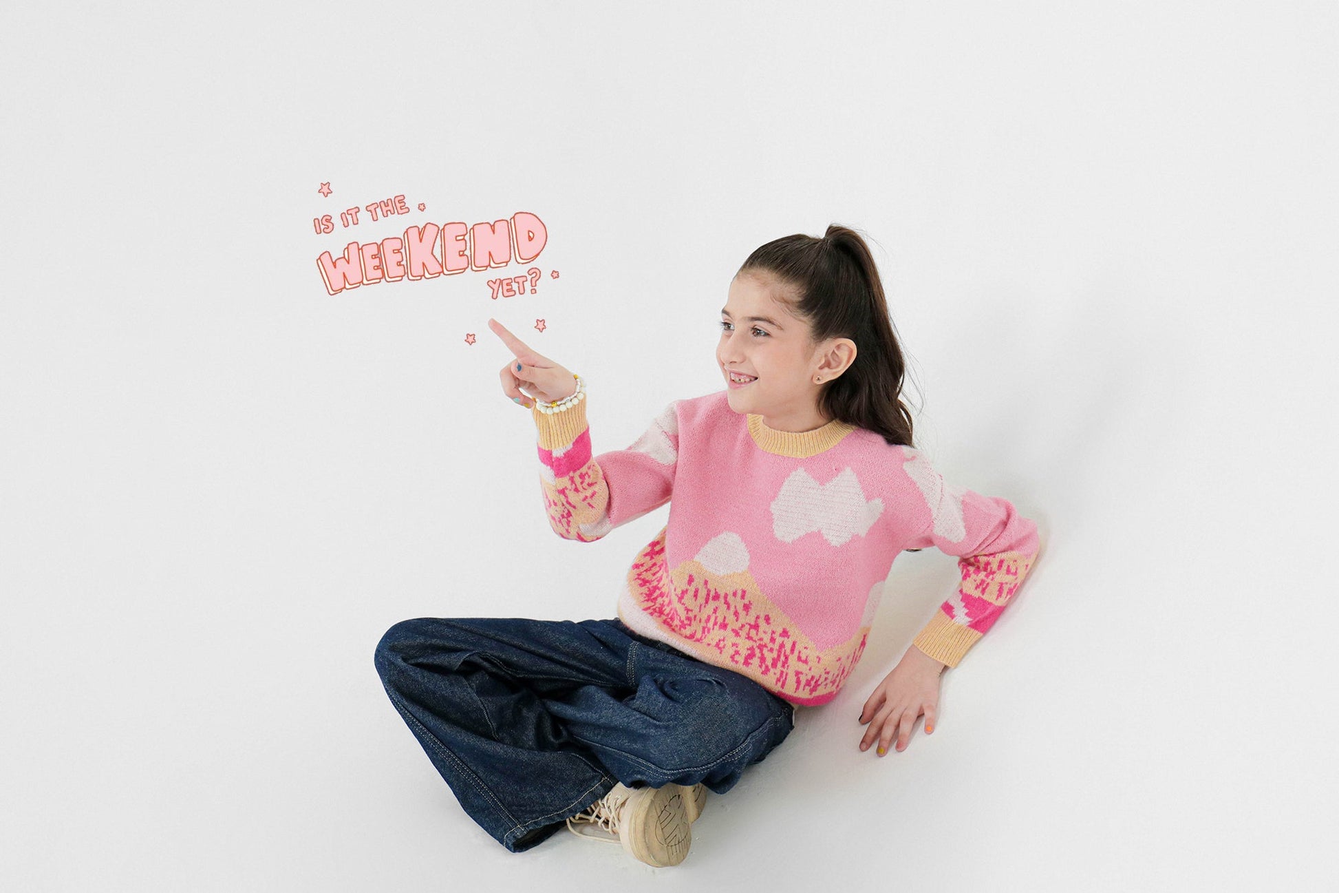 Look chic this winter season in this graceful sweater rendered in powder pink shade. Portraying a trendy composition enriched with captivating scenery designs incorporated at front in subtle colors, this alluring sweater is a great option to bear the winter cold with style this season.