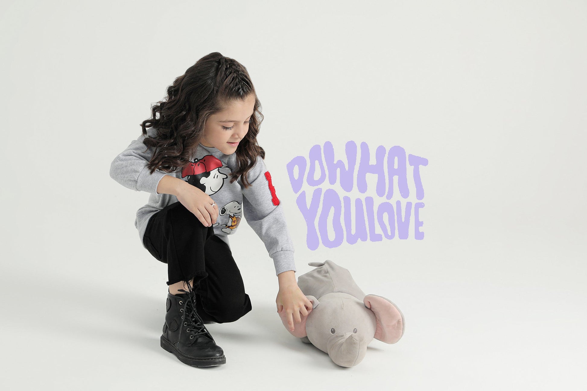 A quirky yet chic composition is layered over this light grey ensemble that features a graceful sweatshirt adorned with quirky cartoon illustrations printed in appealing colors, this cheerful outfit is a source of happiness for your little girls to style this winter season.