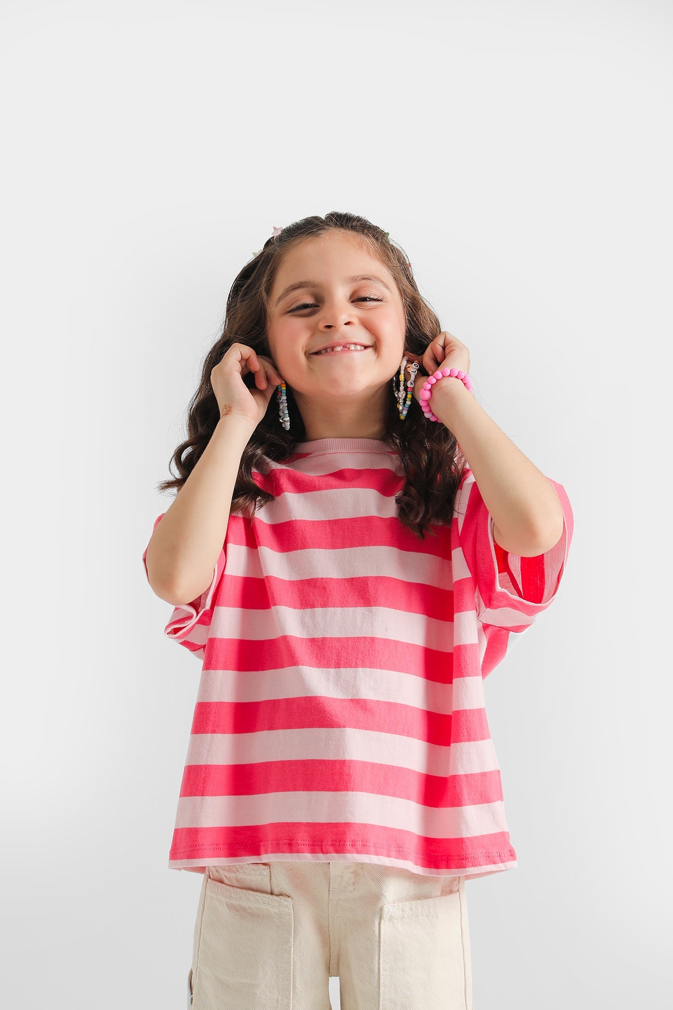 A dreamy design is portrayed on this classy t-shirt rendered in a vibrant shade. Adorned with captivating stripes in contrasted pink shade. Style this trendy radiant t-shirt at day events this season.