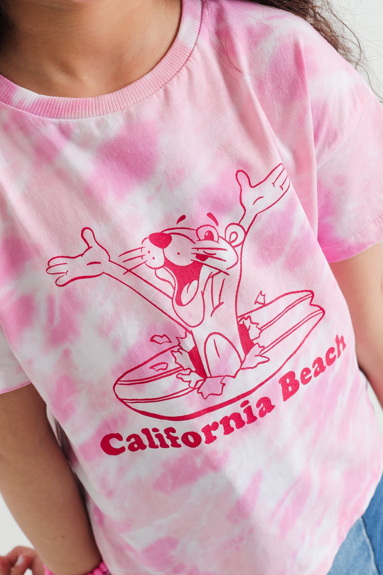 A dreamy design is portrayed on this classy single jersey t-shirt rendered in a celestial white shade. Adorned with captivating pink panther cartoon illustrations printed at front in appealing colors. Style this trendy t-shirt at day events this season.
