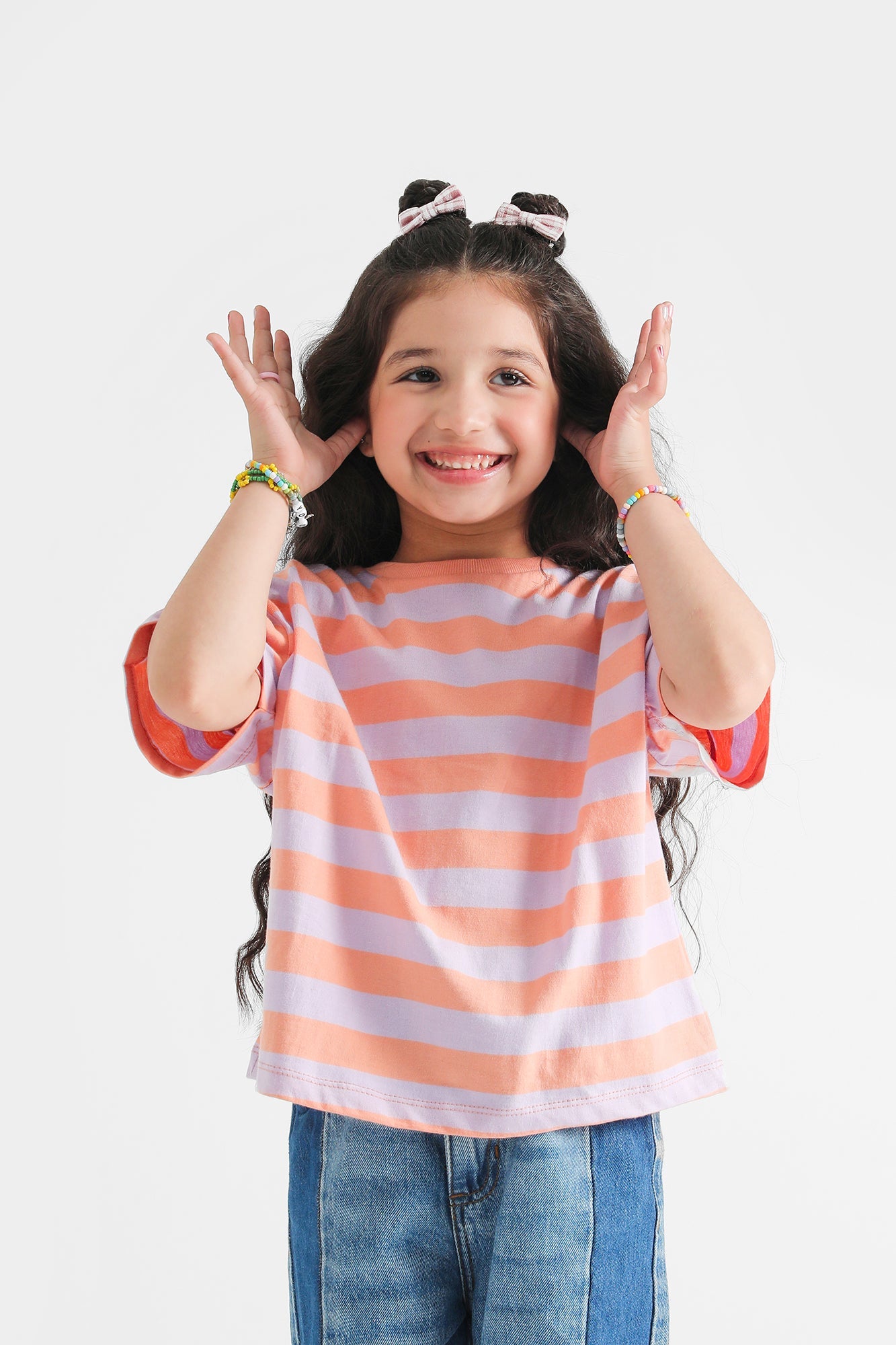 A dreamy design is portrayed on this classy t-shirt rendered in a vibrant shade. Adorned with captivating stripes in contrasted purple and appealing orange shade. Style this trendy radiant t-shirt at day events this season.