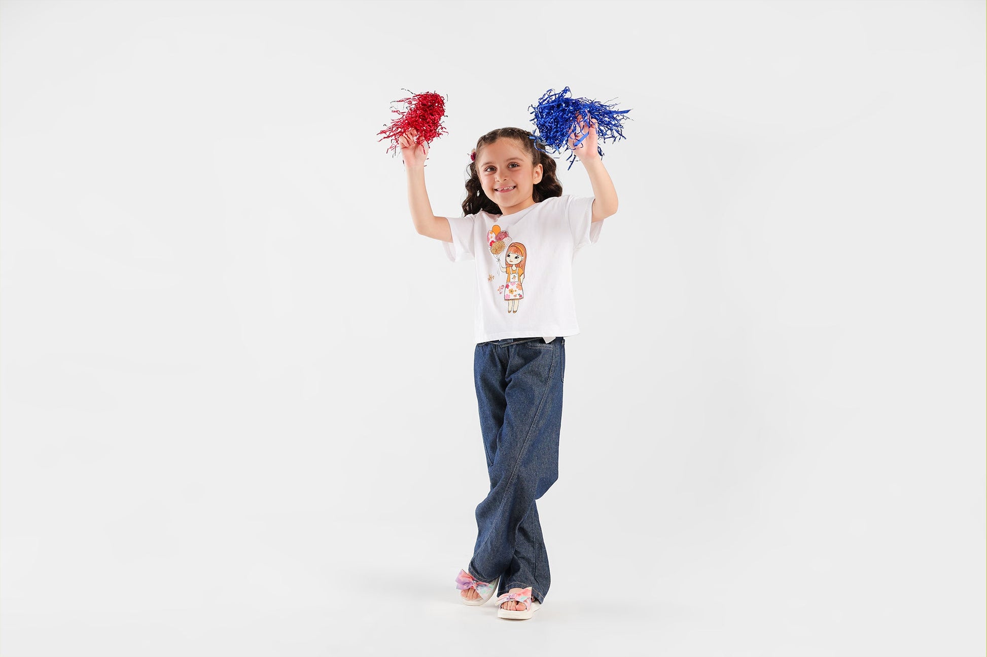 A dreamy design is portrayed on this classy single jersey t-shirt rendered in a celestial white shade. Beautifully enriched with captivating illustrations printed at front in appealing colors and embellished with sequins details, style this trendy t-shirt at day events this season.