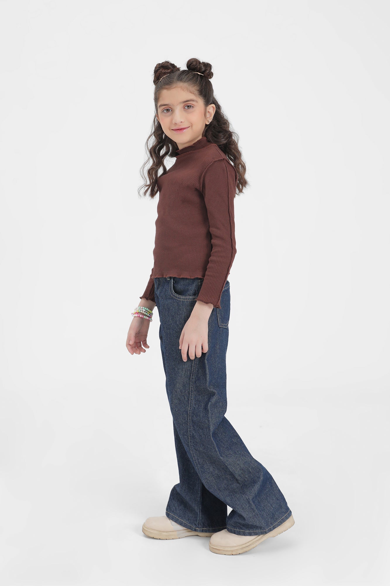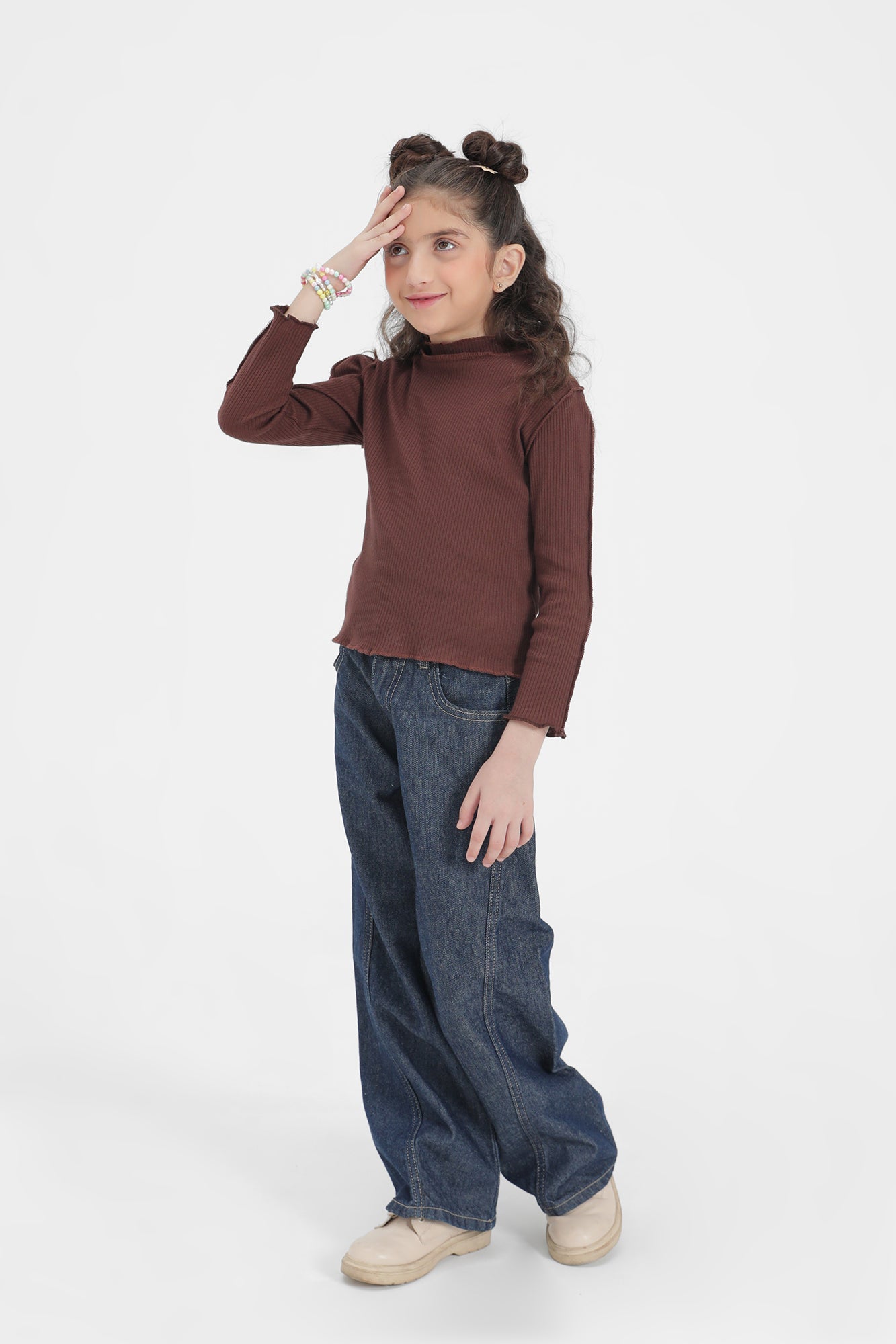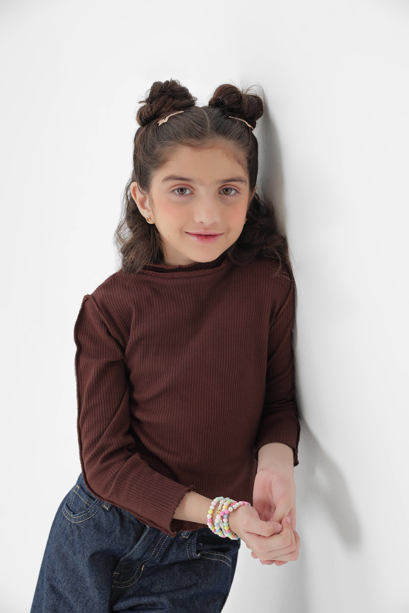 In an attractive brown color, this trendy ensemble features a classy rib top crafted in a contemporary silhouette with round neck. Look classy this season in this statement top ang enjoy this winter season with utmost grace.