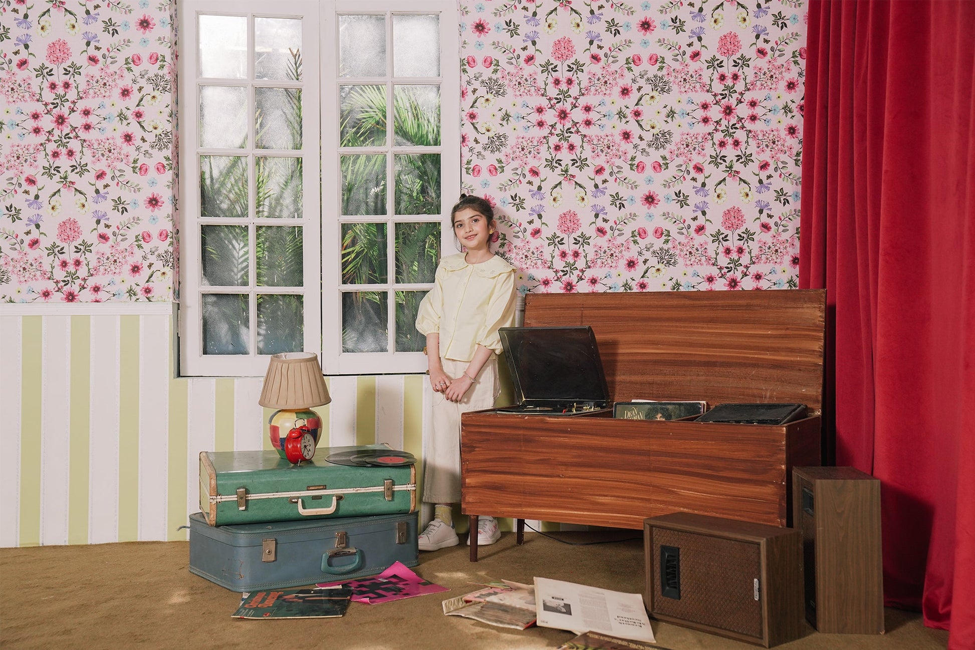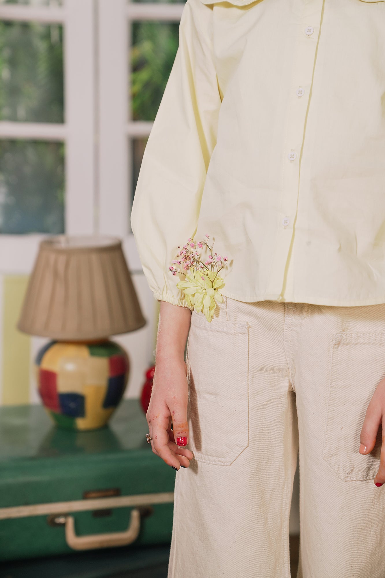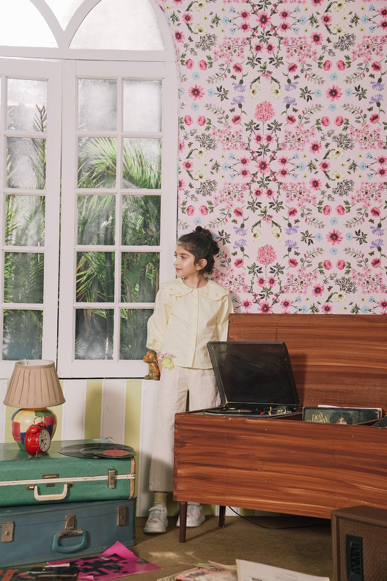 A classically chic design is portrayed on this graceful top rendered in yellow beige shade. It illustrates an elegant button down top beautifully adorned with peter pan collar with scalloped edges and enhanced with scintillating embellishments. Style this elegant outfit at day gatherings this season.