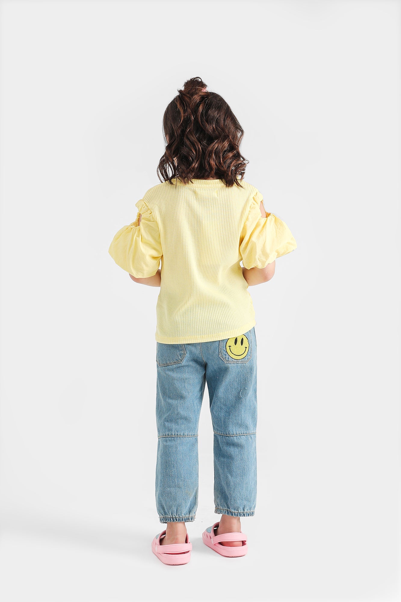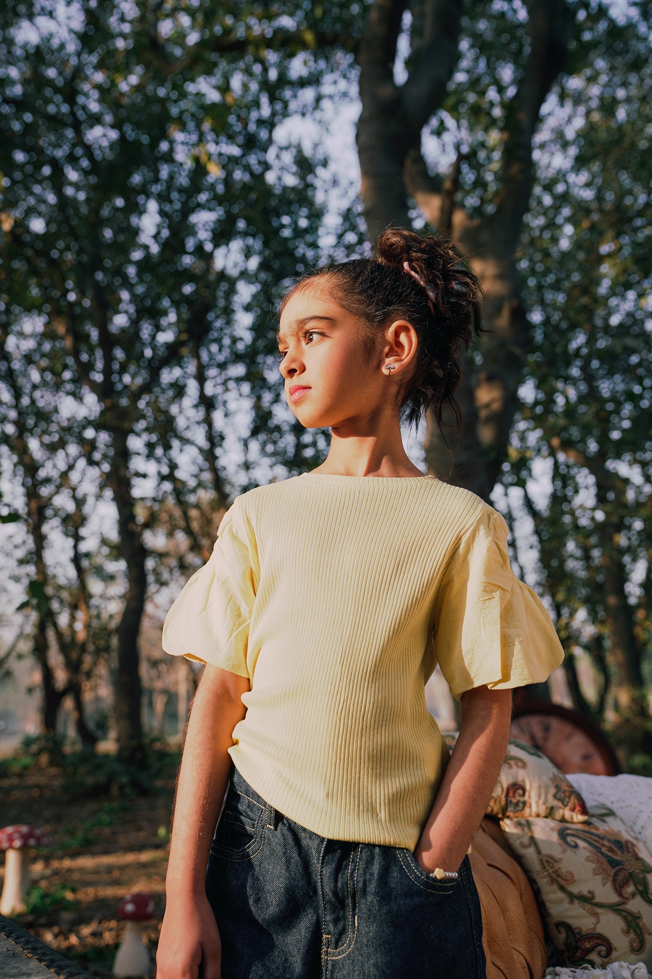 A classically chic design is layered over this elegant top rendered in a gleaming yellow shade. It features a contemporary silhouette adorned with gathered shoulders and keyhole at sleeves. Style this sophisticated top at day events this season.