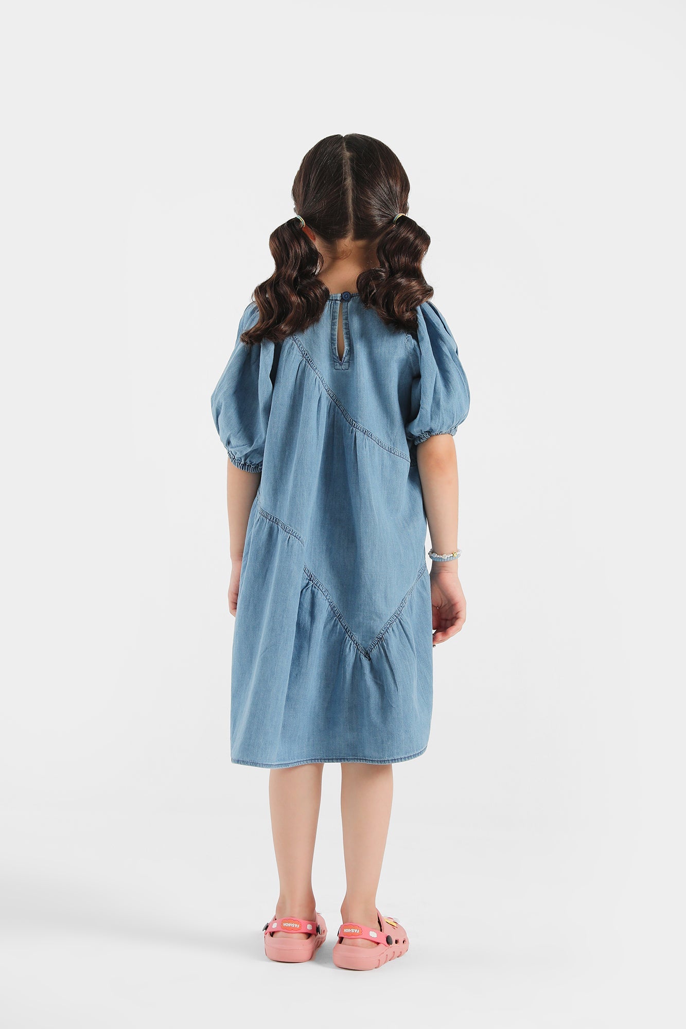 This elegant top is a perfect piece for the edgy, trend-setting look for your kids. Crafted from denim fabric, this top features elasticated sleeves openings for a comfortable fit. With gathers all over, this solid blue denim top is a statement piece for any wardrobe.
