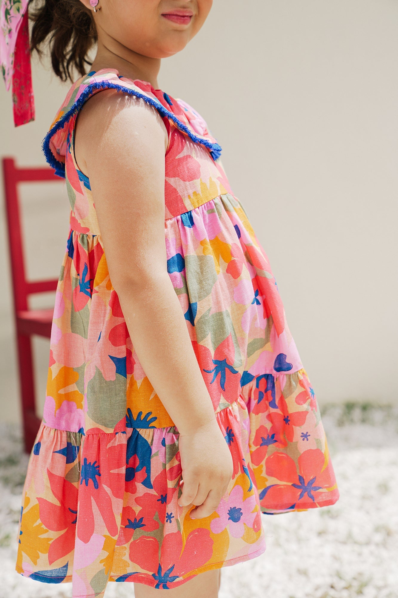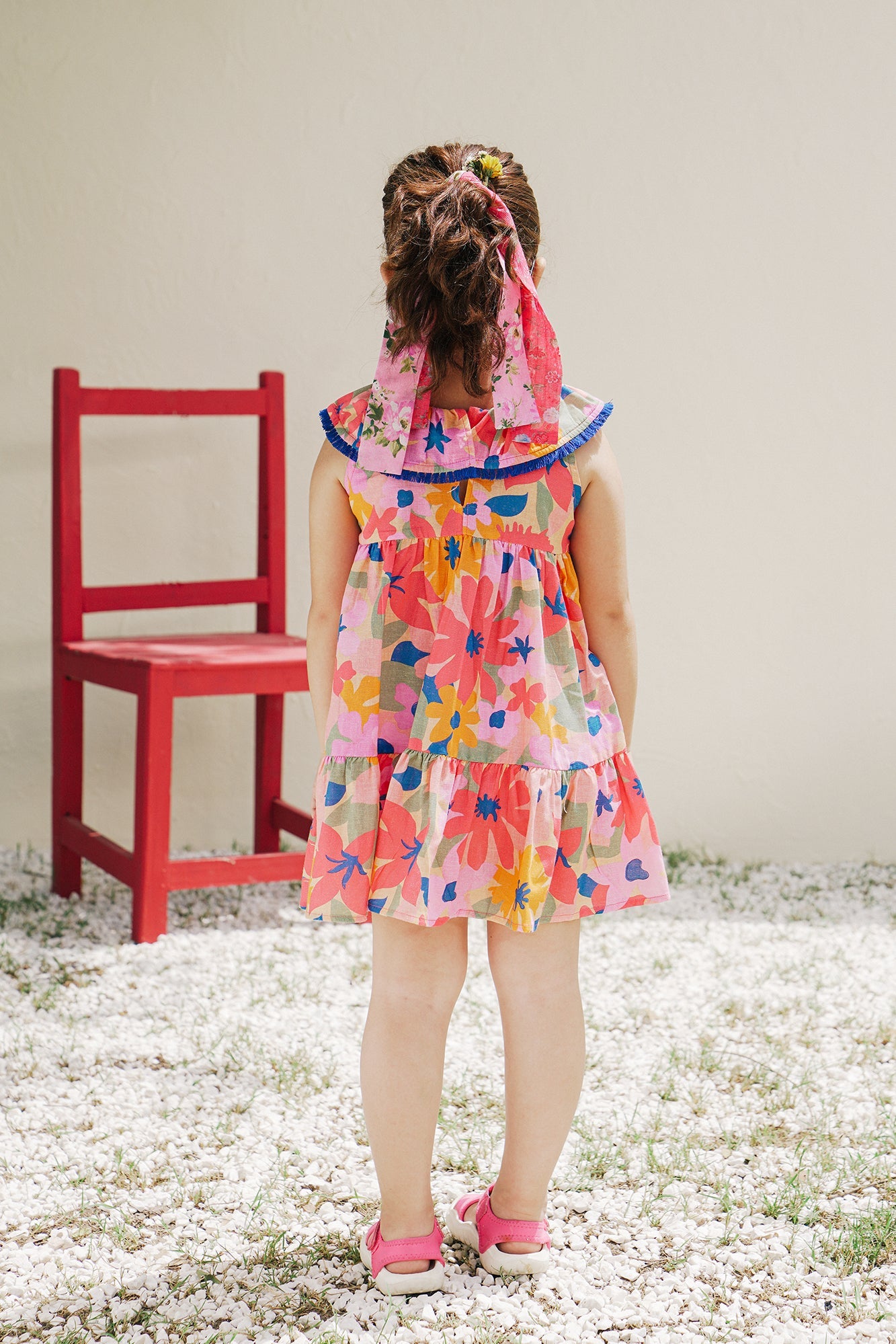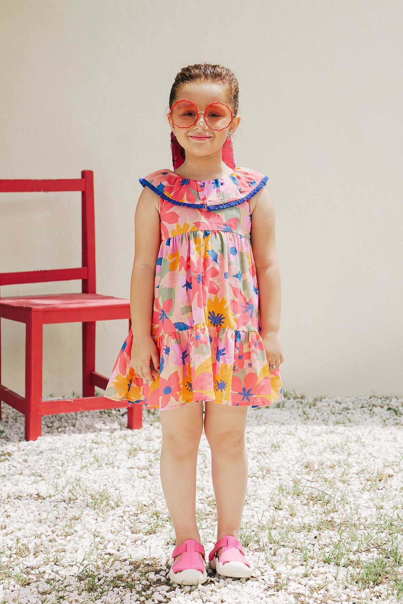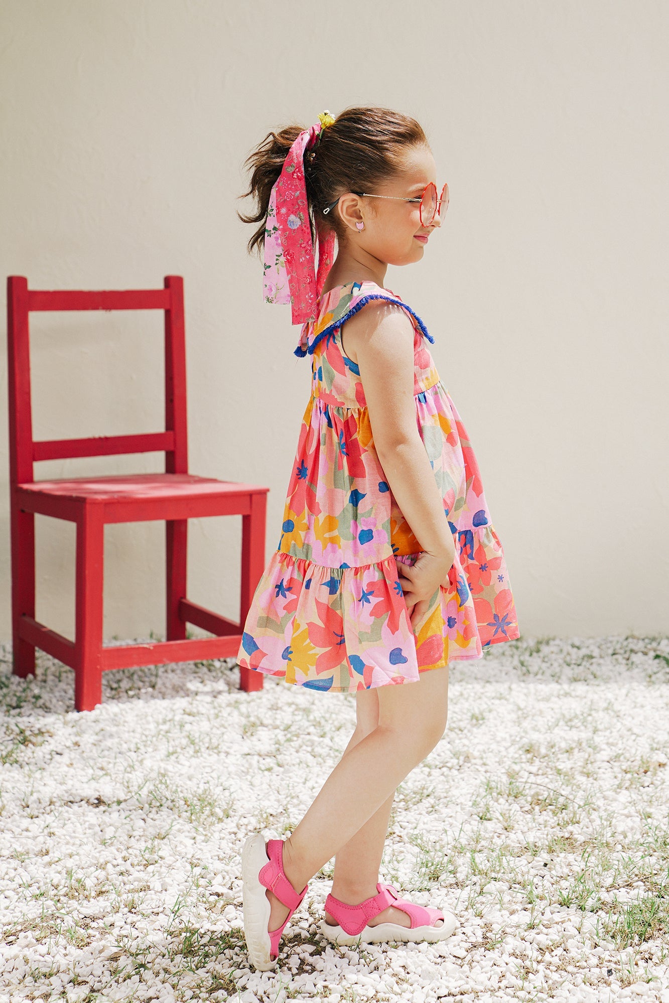 This fashionable top is a must-have for the summer. Its elegant silhouette, pale pink color, and vibrant floral prints create a chic and graceful look, perfect for summer parties and other fun events. Gathers add a trendy touch, while the lightweight fabric ensures an airy and comfortable fit. Let your kids look stylish and stay cool this season!