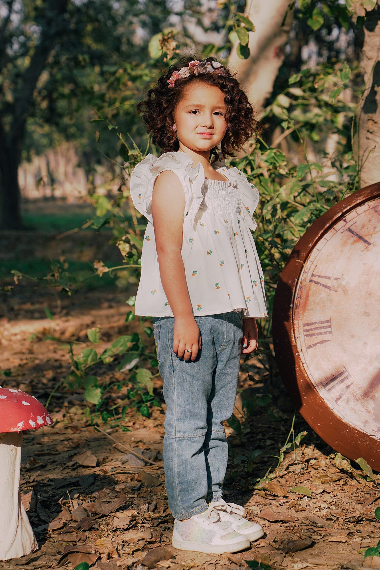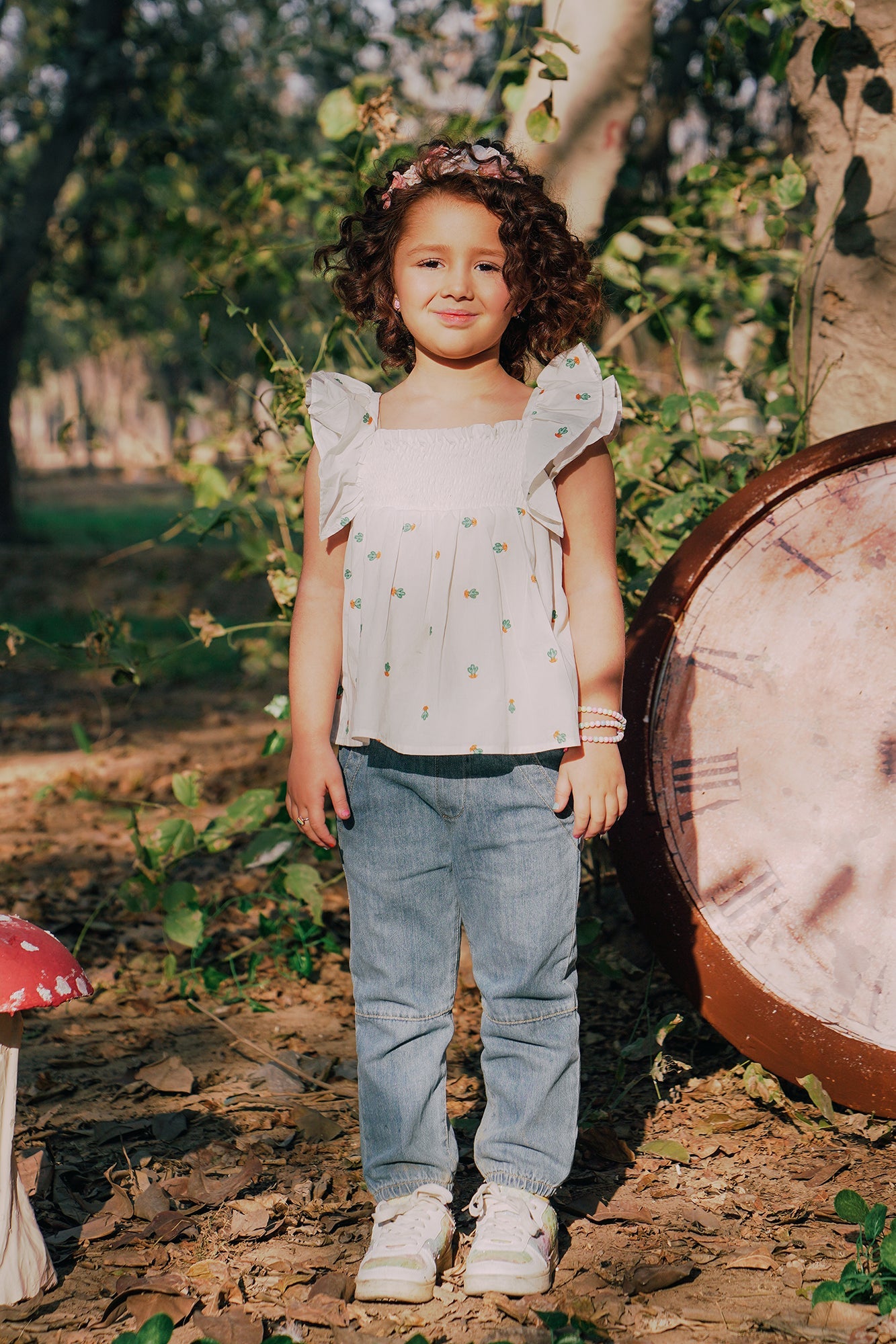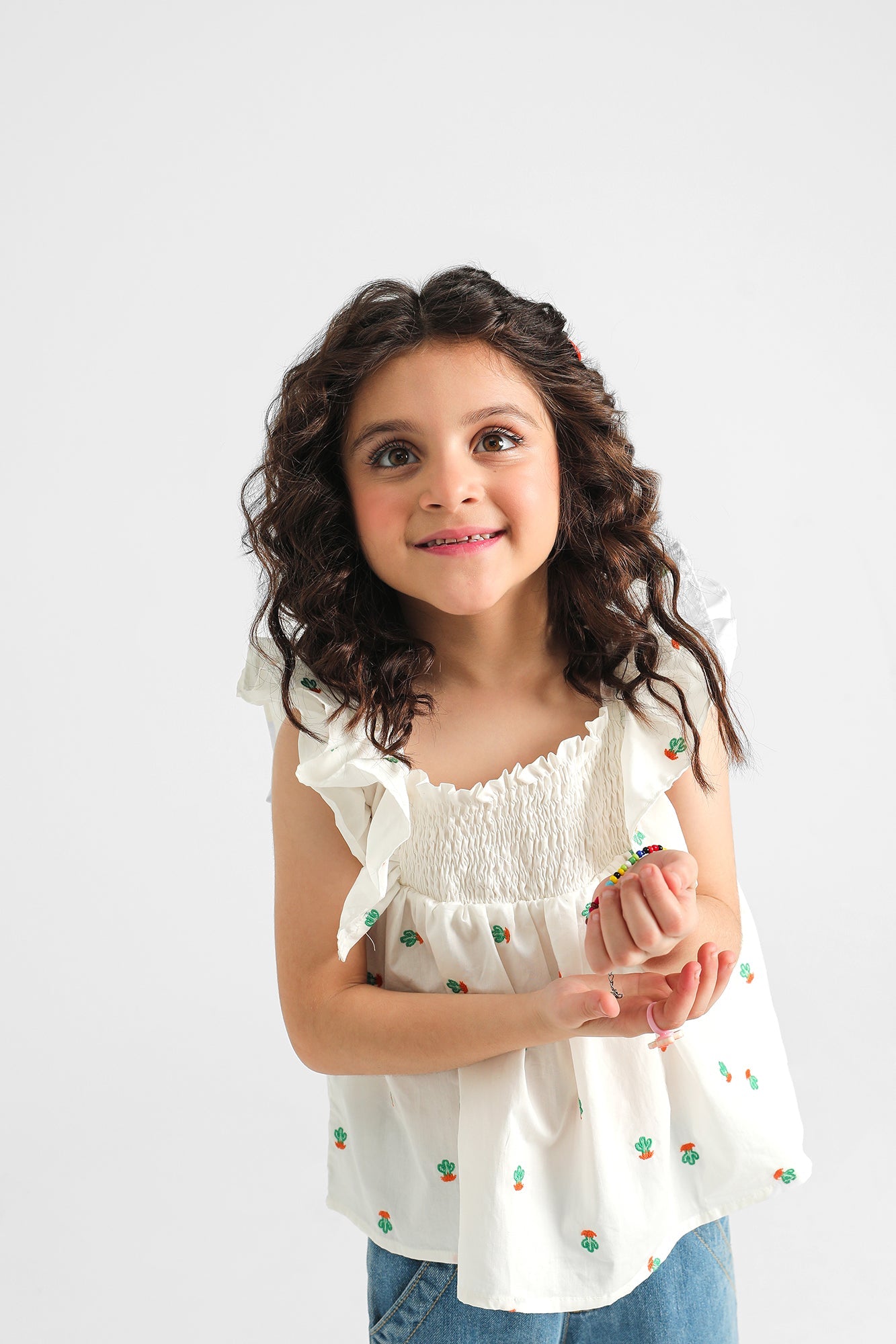 A mesmerizing composition is portrayed on this classy Yarn dyed top rendered in a classic coconut milk white shade. Crafted in trendy without sleeves silhouette adorned with intricate embroidery illustrating cactus designs, this chic top is a great option for summer parties.