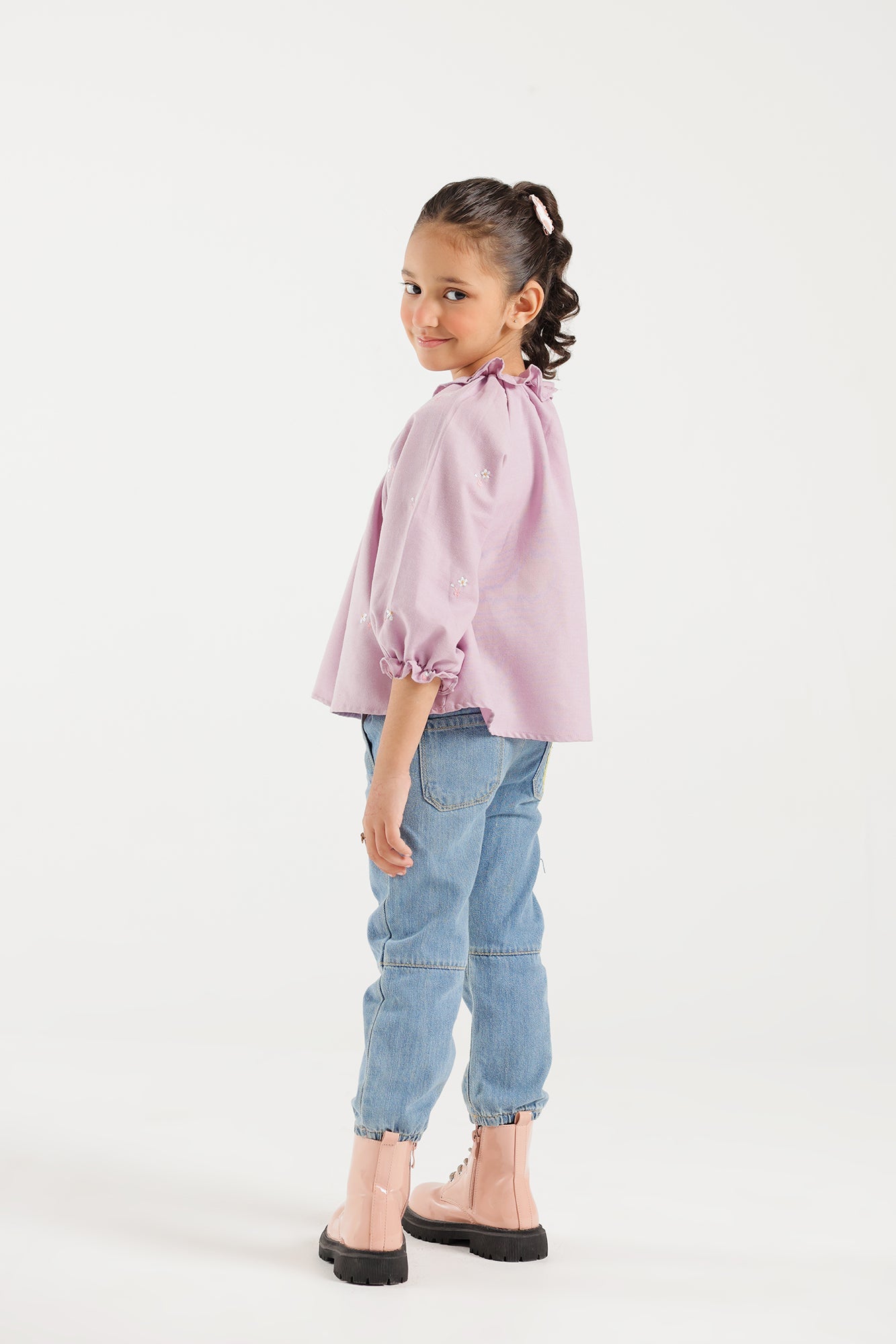 A fascinating design is layered over this trendy top rendered in smoky grape shade. Crafted in a classy silhouette with elasticated yoke and sleeves opening, this chic top illustrates captivating floral embroidery in vibrant hues. This statement top is a perfect option for your kids to style this fun season.
