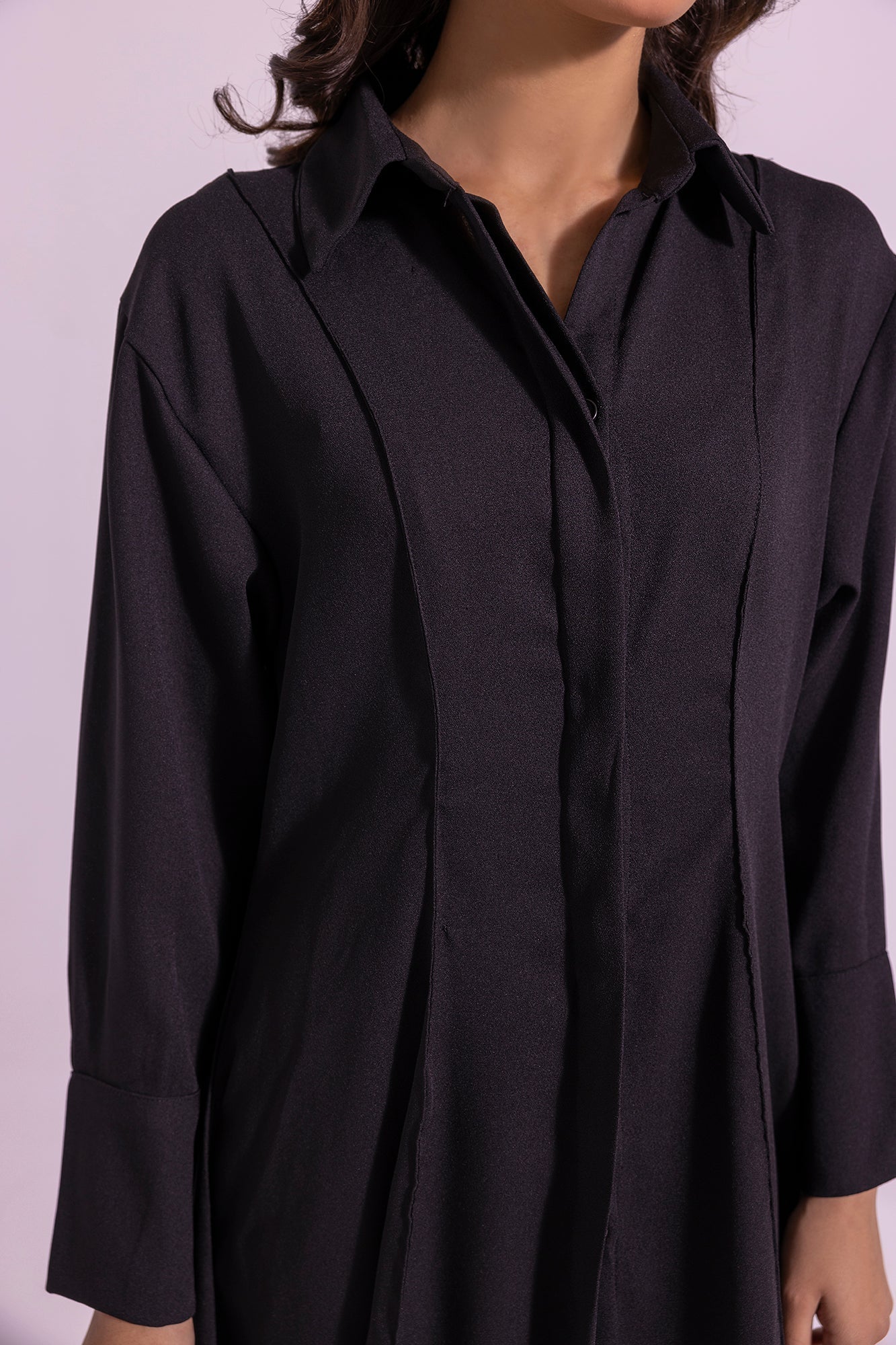 An aesthetically rich composition is layered over this trendy dress rendered in a charming black shade. It is crafted in a contemporary silhouette and beautifully enriched with intricate pleated silhouette with a flared look. This graceful dress outfit is a great option to style at fun events this happening season.