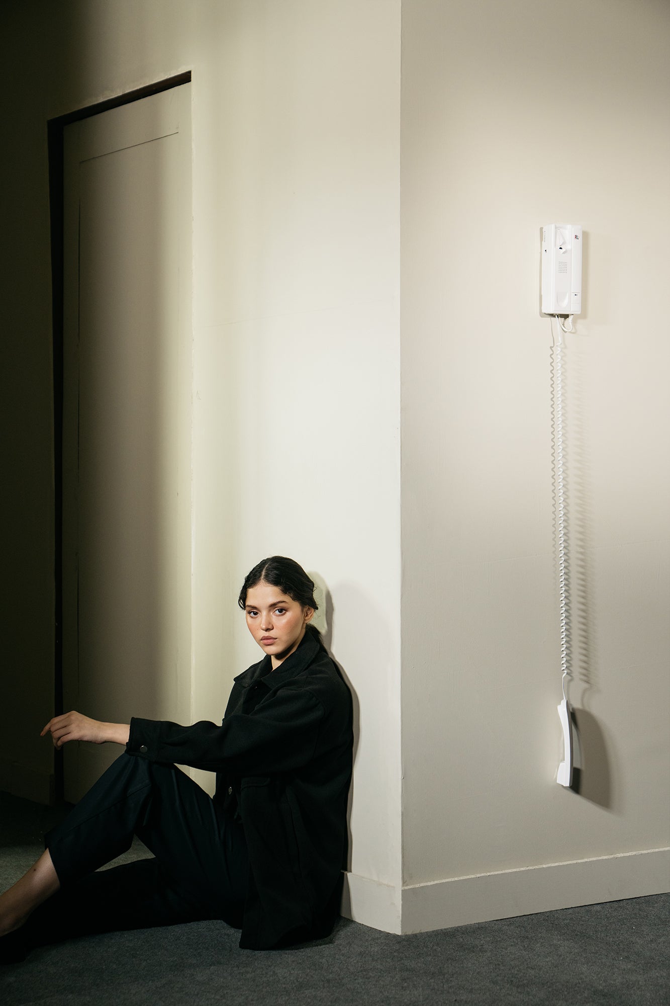 A classy yet chic design is portrayed on this elegant over shirt rendered in a deep black shade. It features a contemporary button down silhouette adorned with flap pockets at front and enhanced with metallic buttons for a trend-forward look, making it a statement shirt for fun gatherings.
