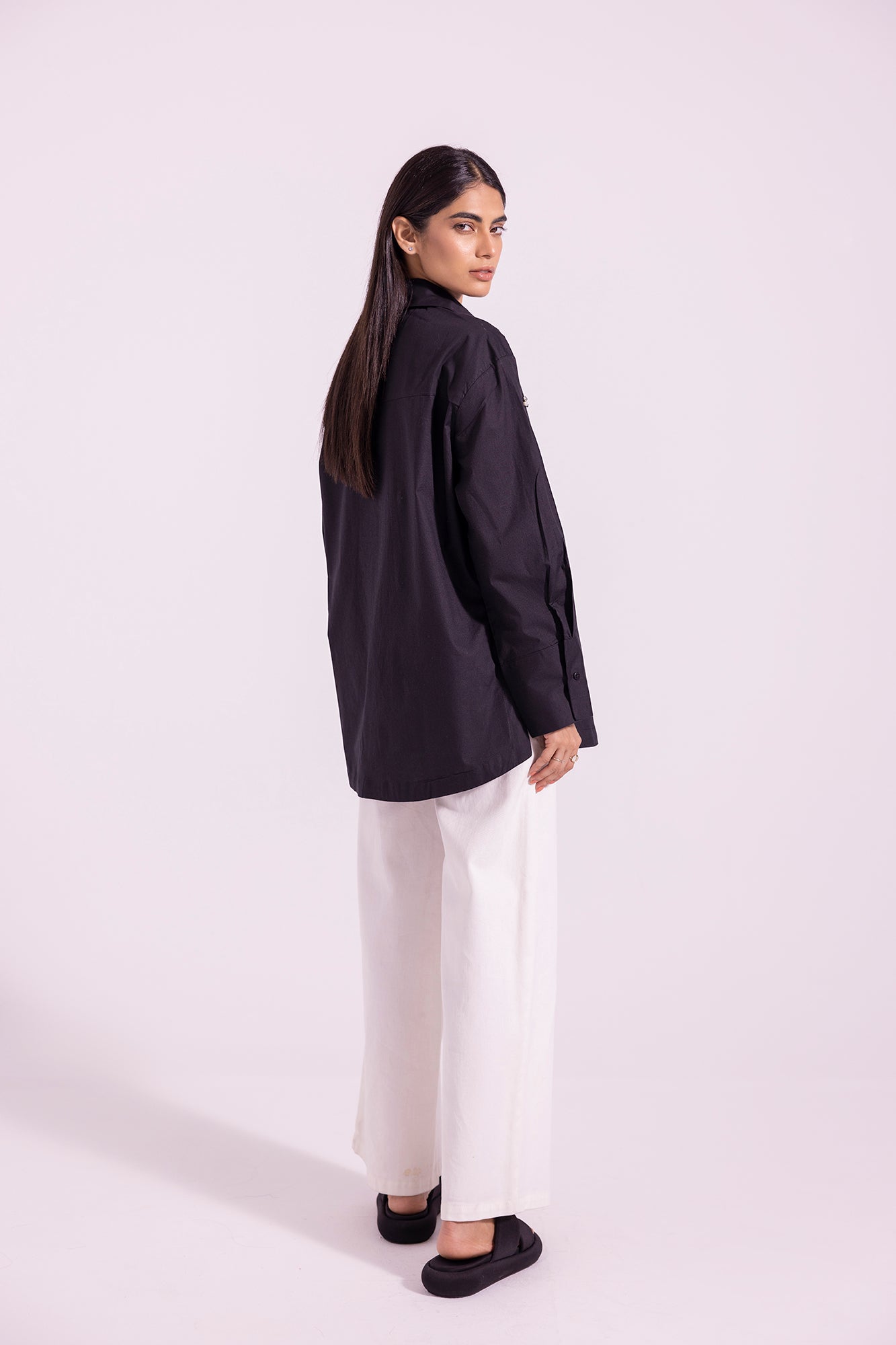 The statement outfit will add a graceful, chic touch to your wardrobe. This button down shirt is crafted from deep black fabric, featuring a classy silhouette, embellished with crystal beads and pearls at the front for a scintillating look. Perfect for glamourous style at happening events.