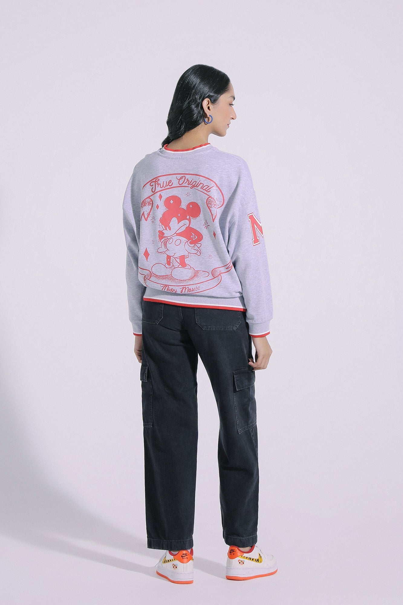 A chic and classy design is layered over this radiant sweatshirt rendered in light grey shade. This contemporary sweatshirt is adorned with captivating Mickey mouse cartoon illustrations printed in vibrant hues. Style this contemporary ensemble on day out with friends.