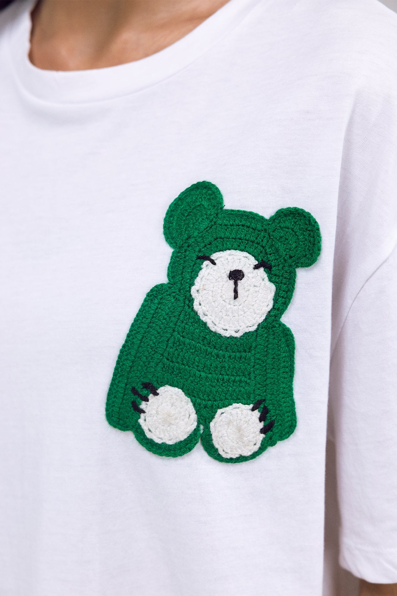 Update your everyday style with the trendy look. This chic t-shirt for women features a classic coconut milk color, enhanced with an adorable bear embroidered at the front left in vibrant green color that gives this piece a unique twist.