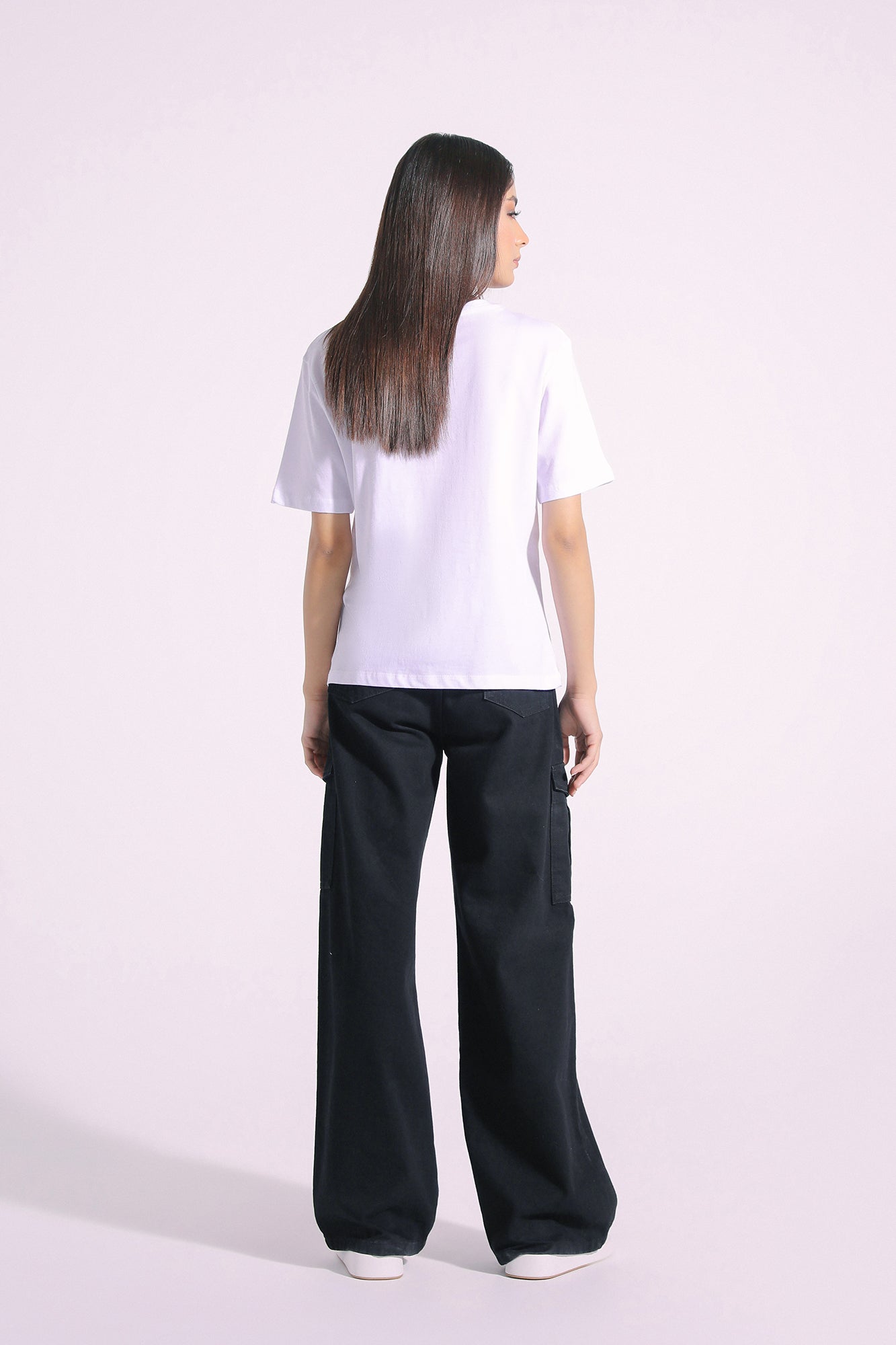 A mesmerizing dreamy white shade t-shirt crafted in a trendy silhouette with round neck is beautifully adorned with floral illustration embroidered in deep black hues. Style this trendy monochromatic t-shirt at casual events and make a statement this summer season.