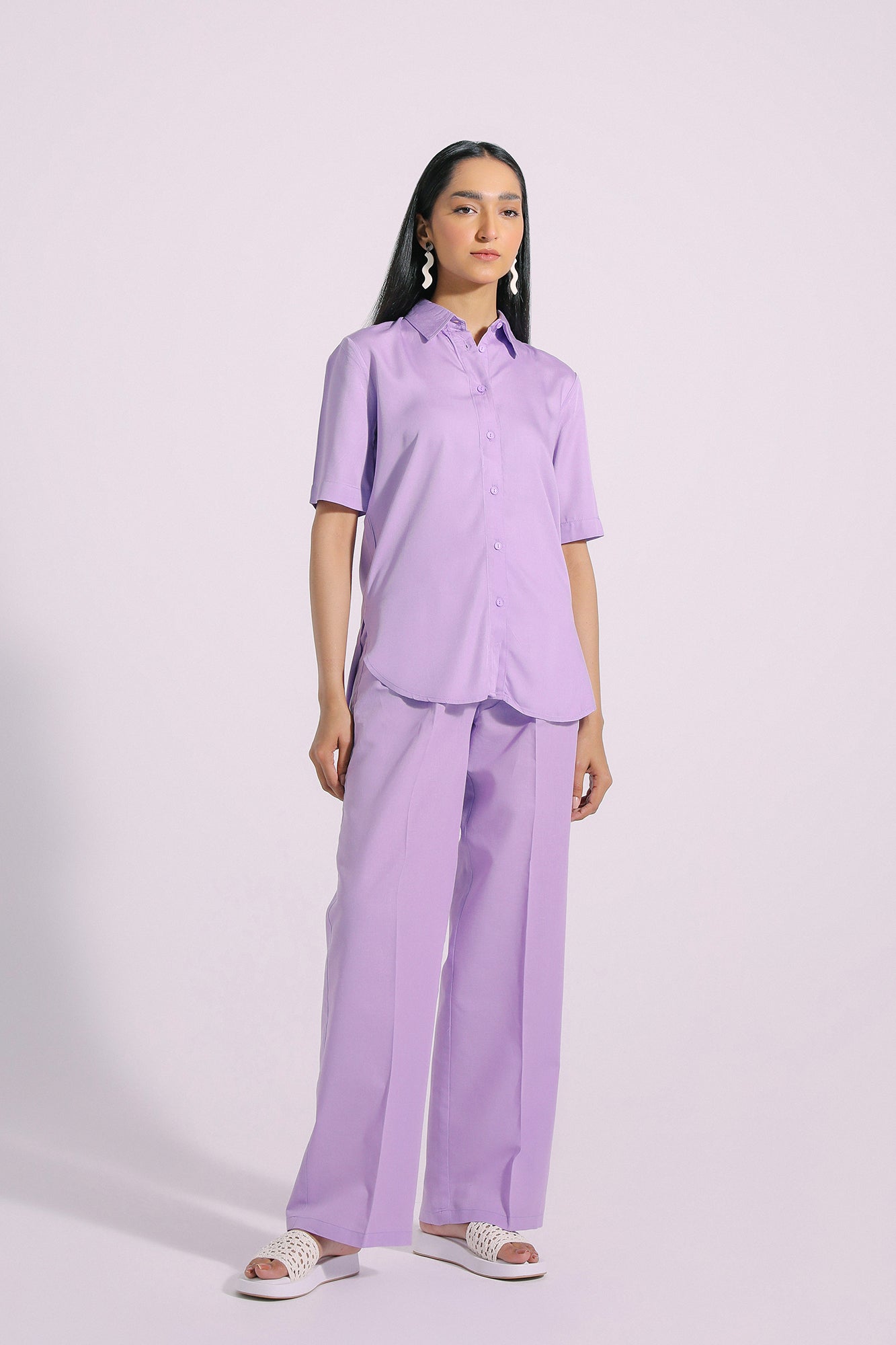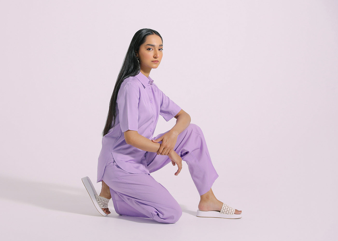 A classically chic design is layered over this trendy button down shirt rendered in a pastel lilac shade. Adorned with round shaped bottom opening, this solid shirt is a statement piece to embrace at casual occasions.