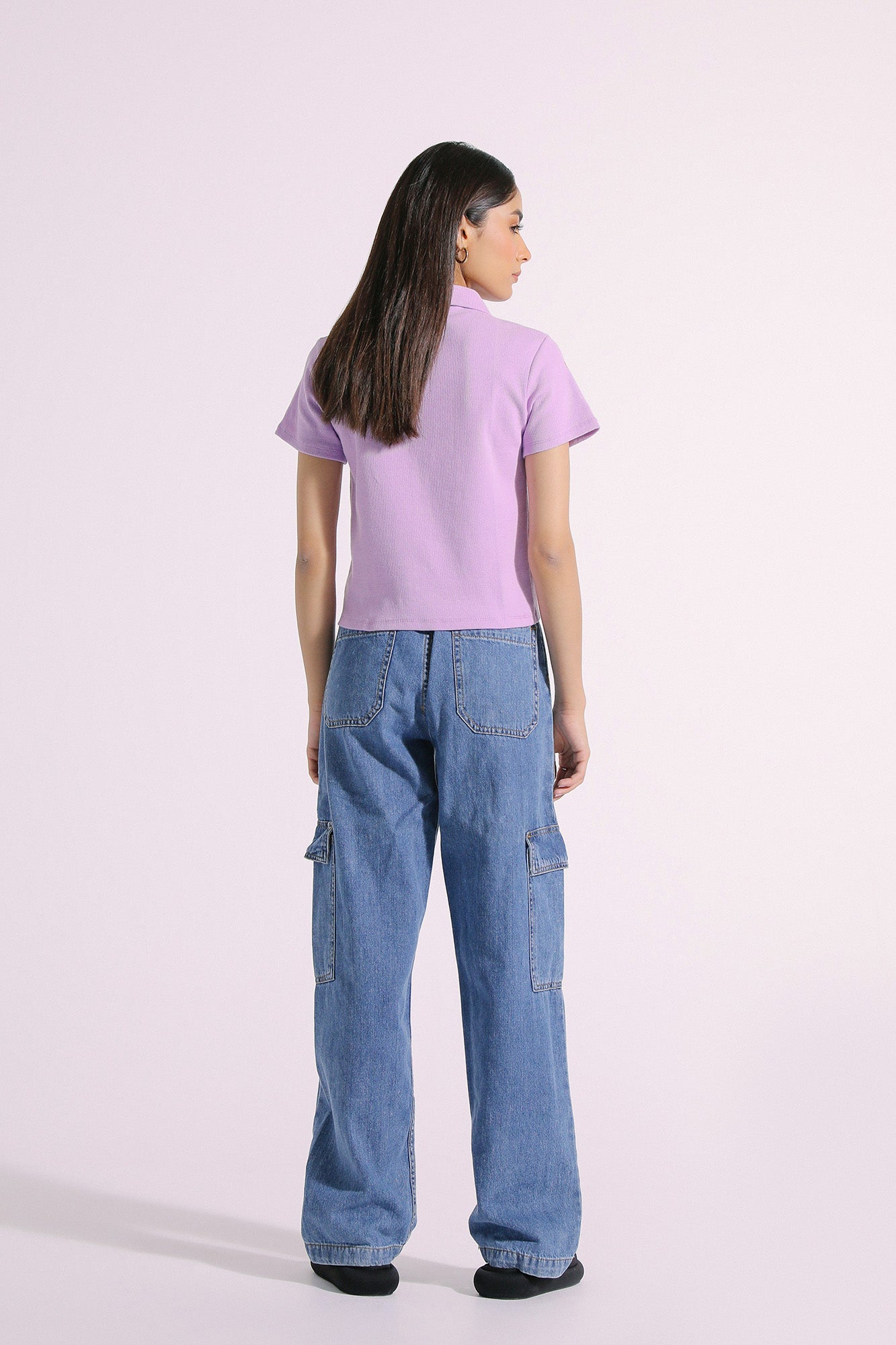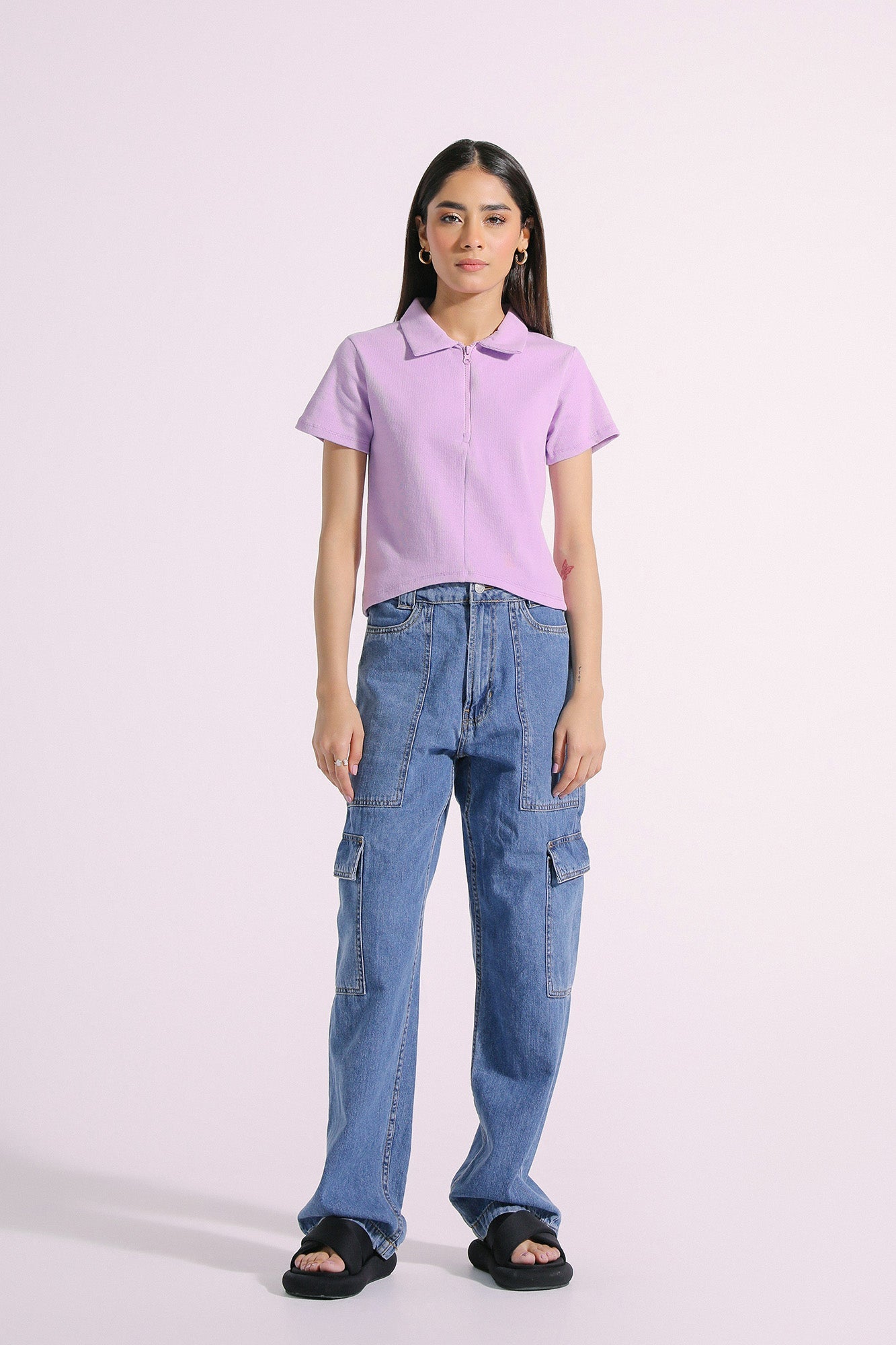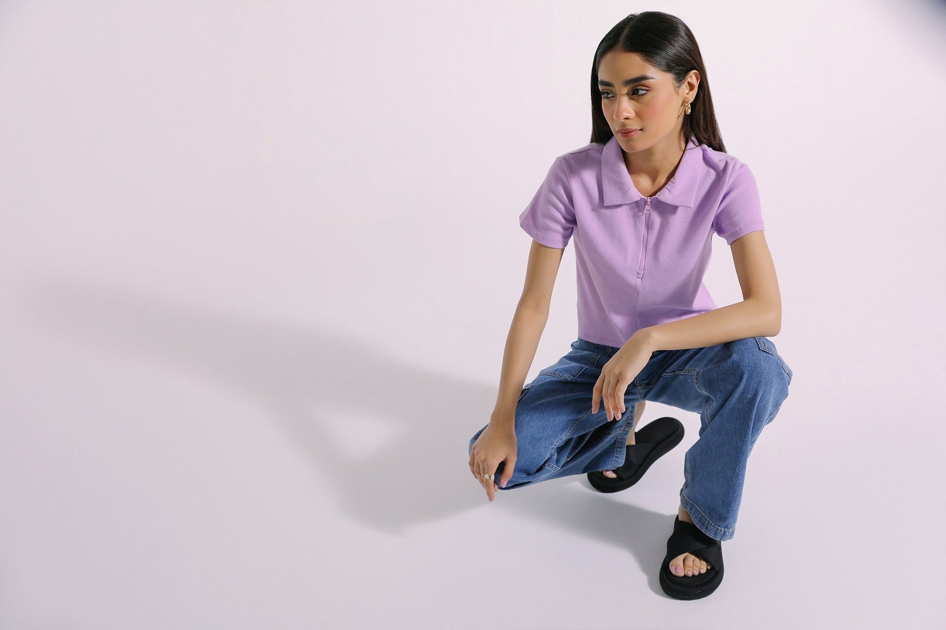 A classy yet elegant composition is portrayed on this solid top rendered in a majestic lilac shade. Crafted in a trendy silhouette with zip at front collar neck, this contemporary summer top is a perfect option for everyday events.