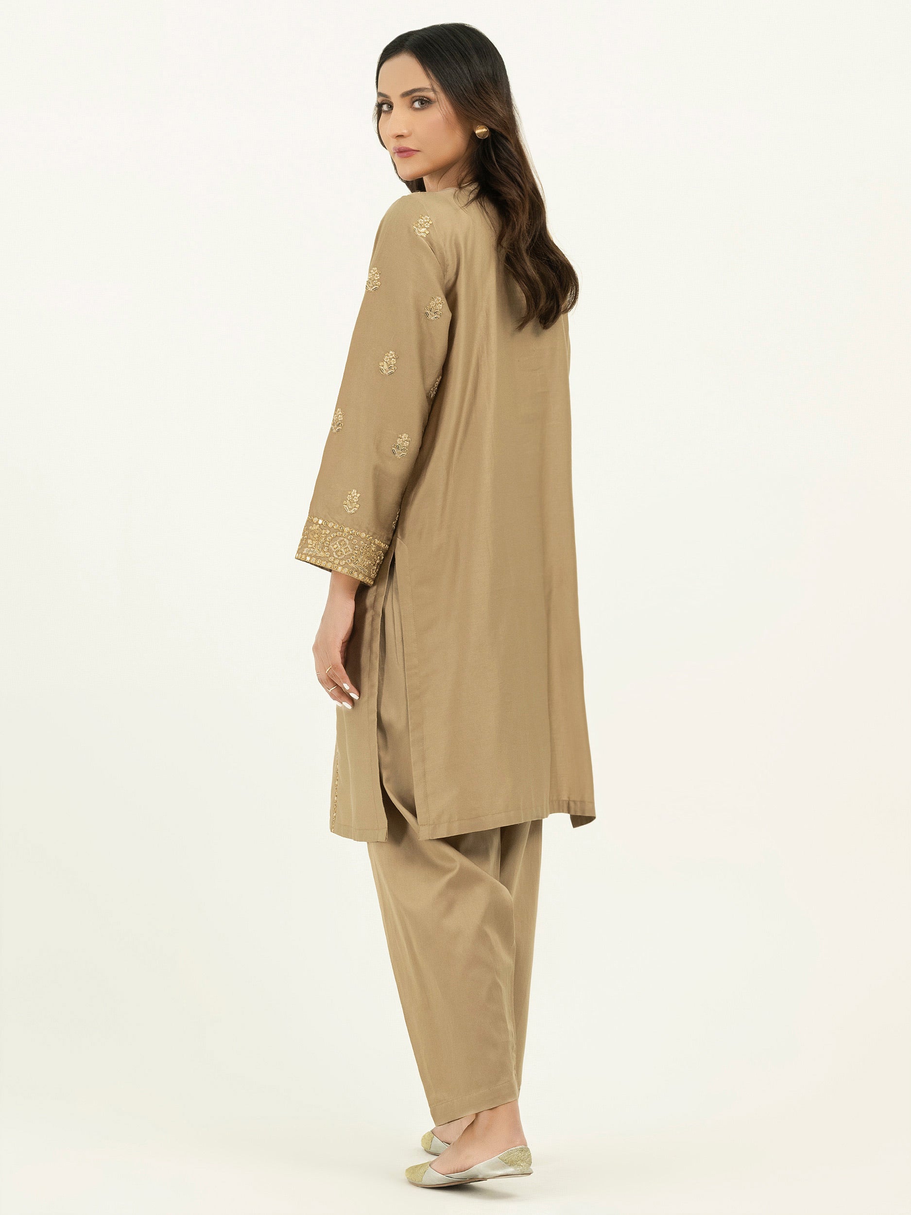 - Narrow-leg shalwar with elasticized waistband