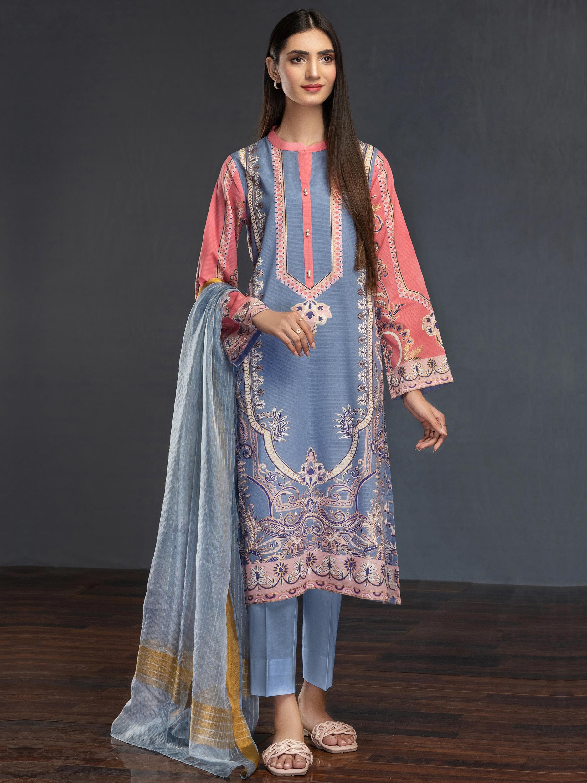 - Unstitched 3 Piece Printed Lawn Suit (Shirt+Dupatta+Trouser)