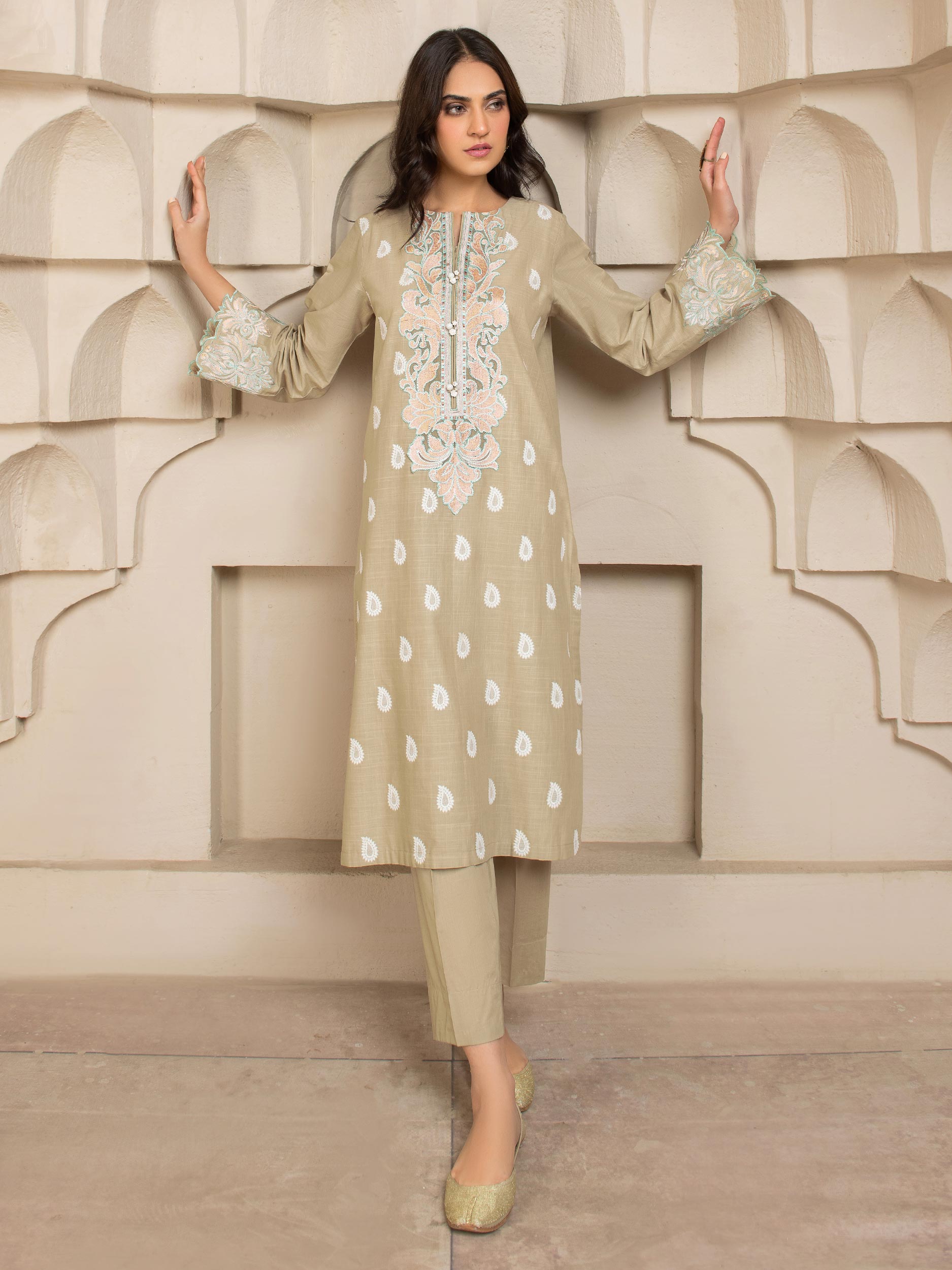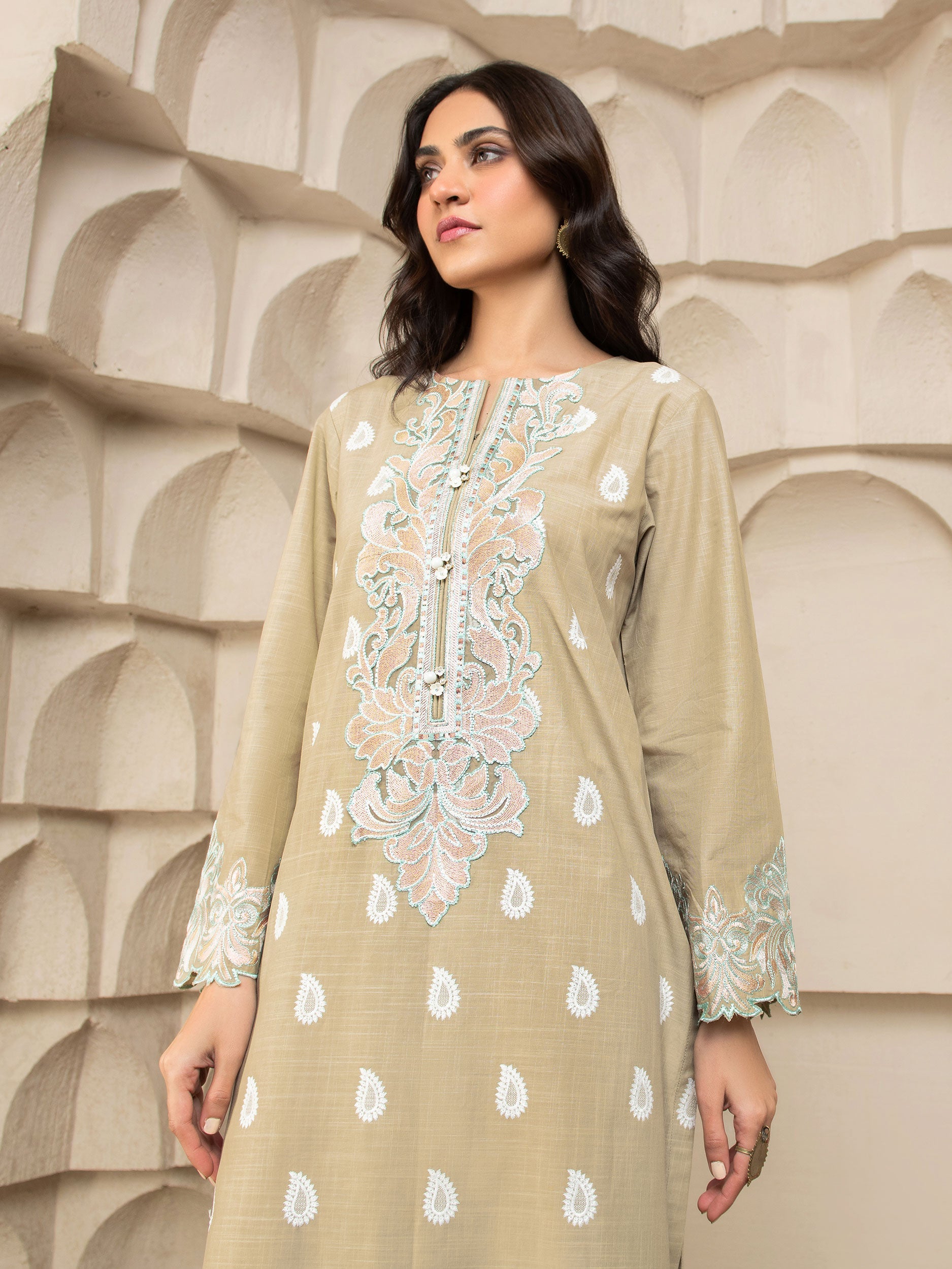 - Unstitched 2 Piece Embroidered Lawn Suit (Shirt+Trouser)