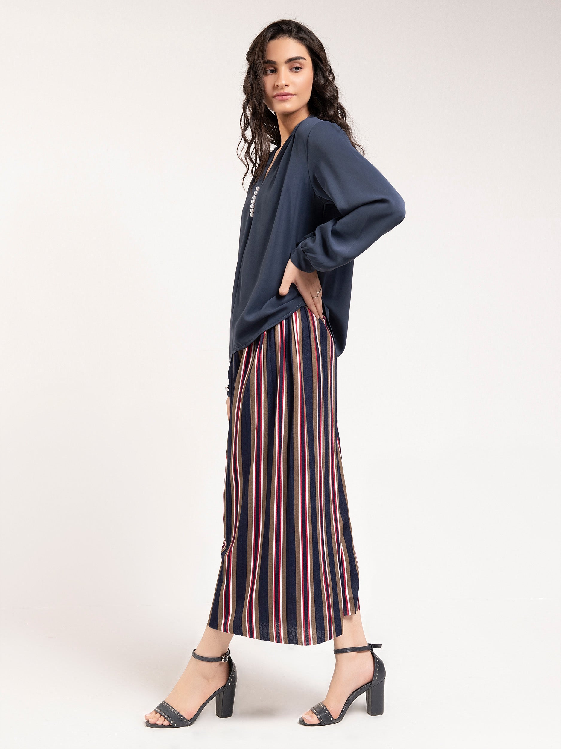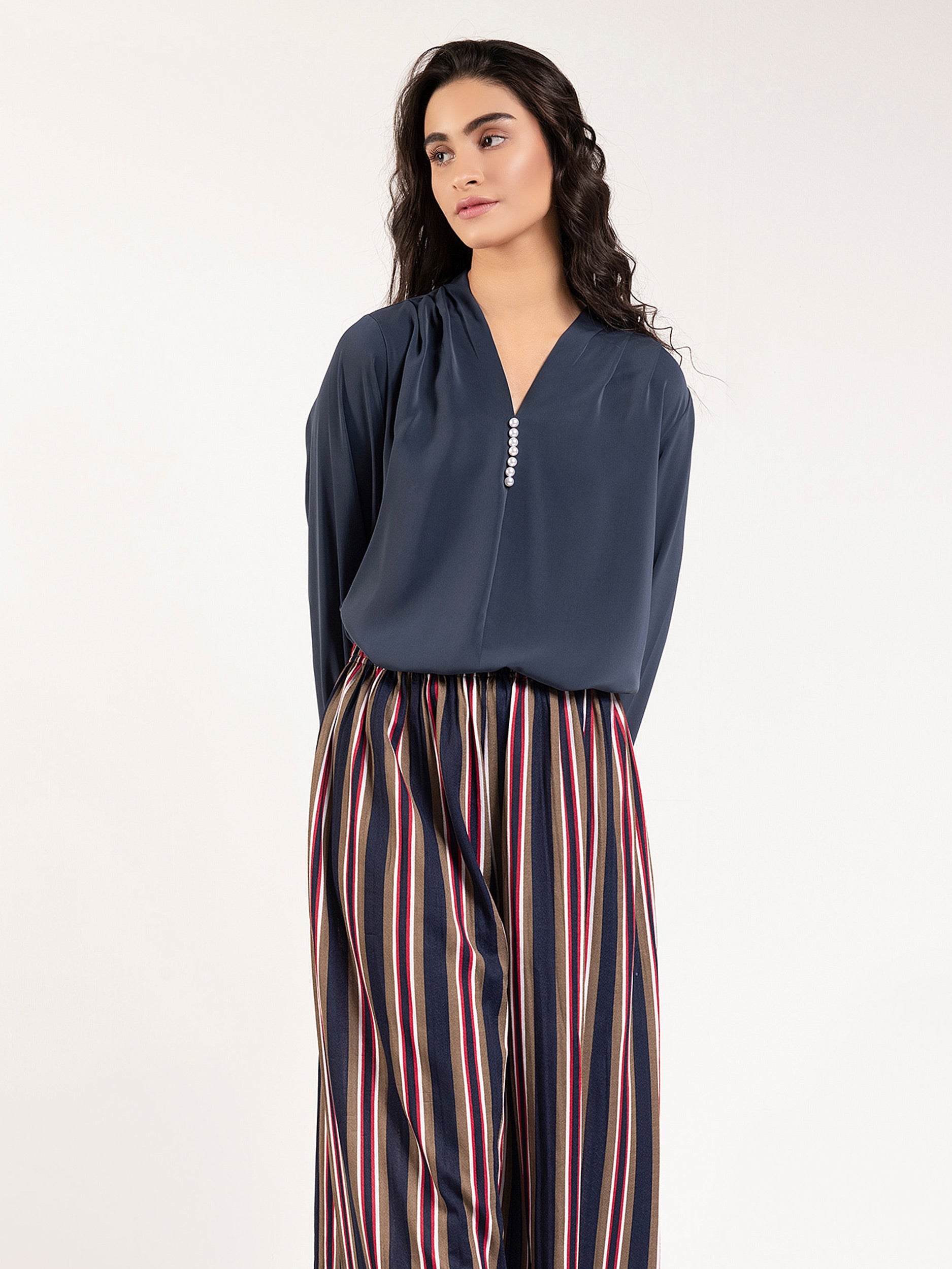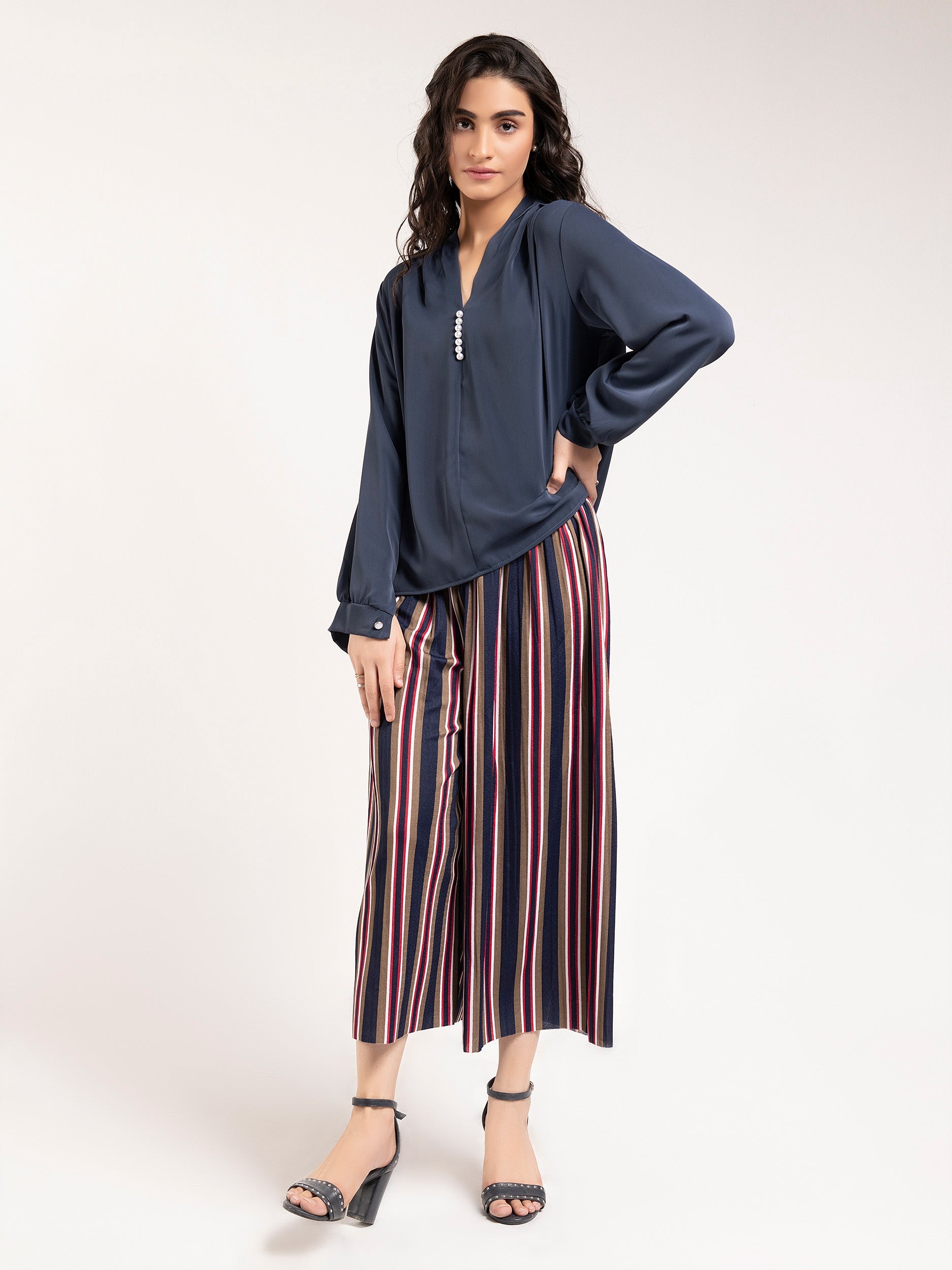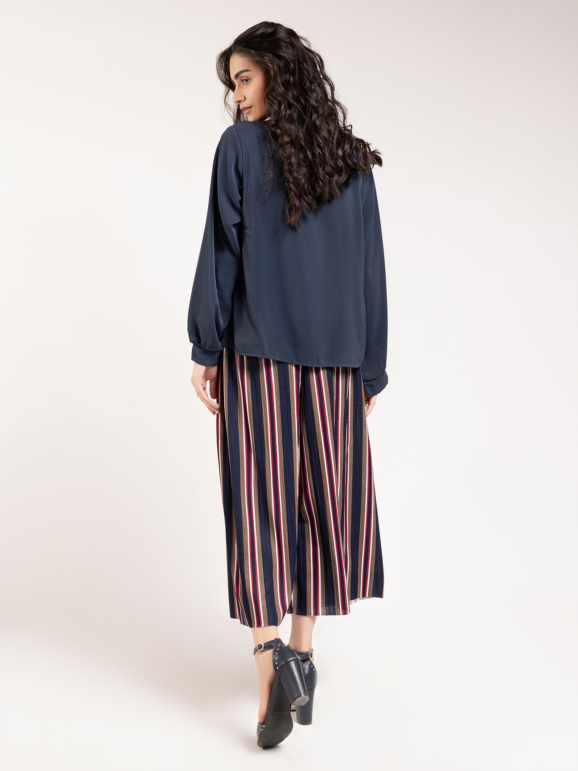Casual Luxe Blue Button-Down Shirt with Thin Stripes